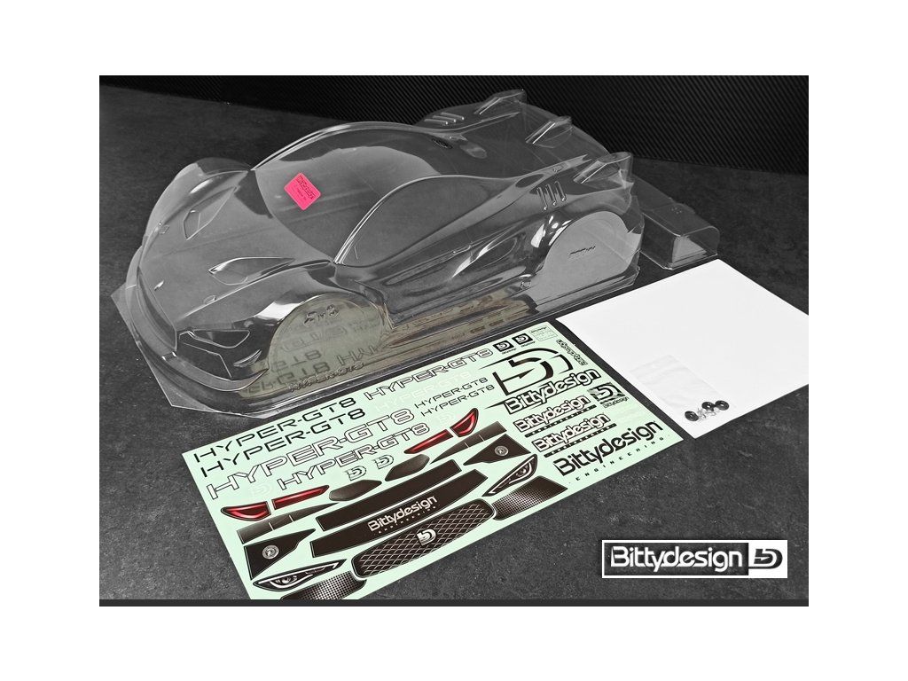 'HYPER-GT8' 1/8 GT čirá karoserie pro rozvor 325mm