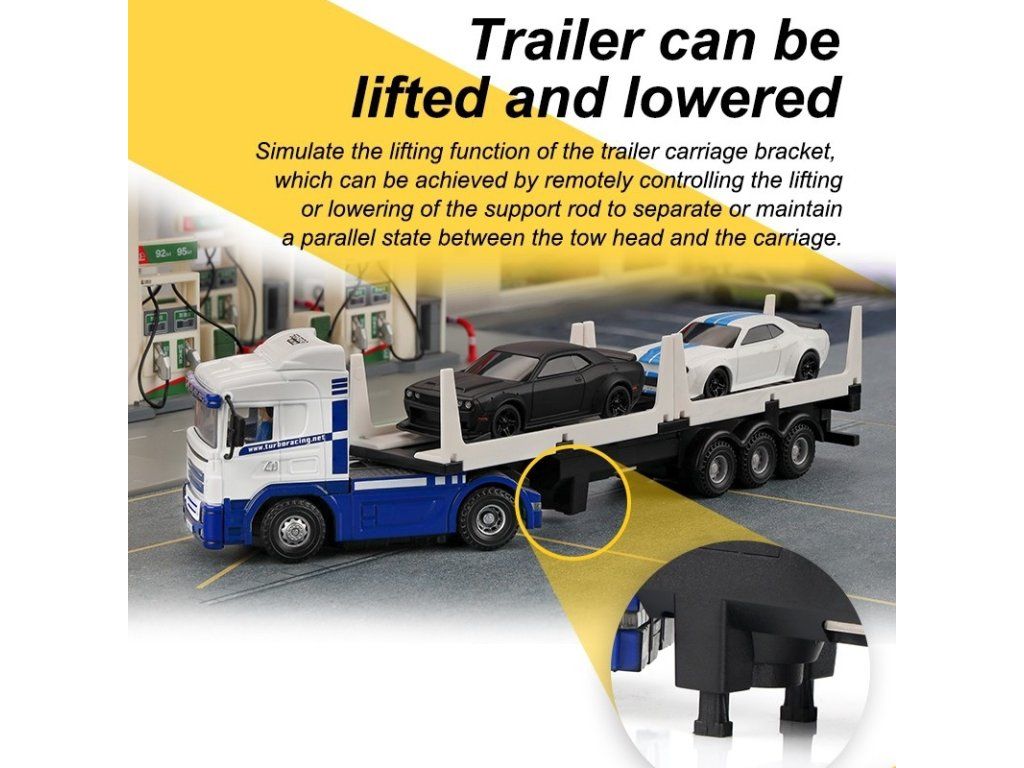 - Přívěs lze odpojit od tahače, navíc obsahuje dálkově ovládaný zvedací mechanizmus