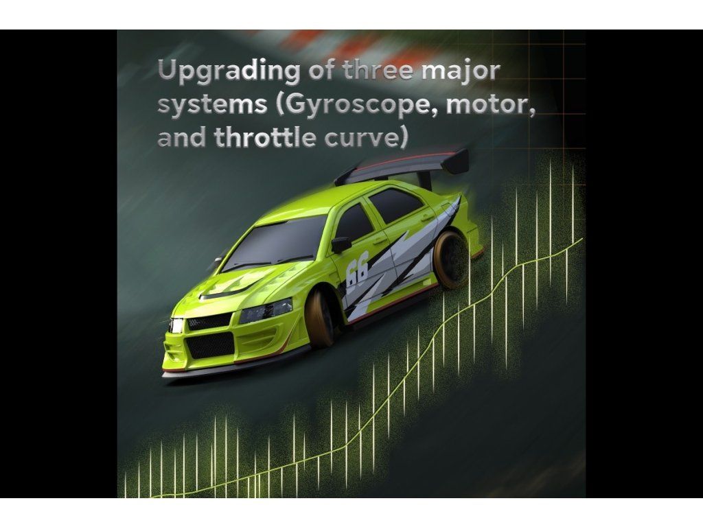 - RWD náhon, vylepšený vestavěný gyroskop, zvýšený úhel zatáčení a kluzká kola pro jízdu v driftu