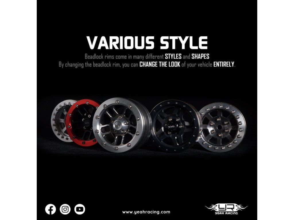 1,9palcová kola Yeah Racing Heavy Duty Beadlock Wheel pro vaše crawlery! Díky použití CNC obrábění, dokonalé kombinaci designu, materiálu a hmotnosti dostanete nejlépe vypadající a nejpevnější kola pro váš expediční vůz.