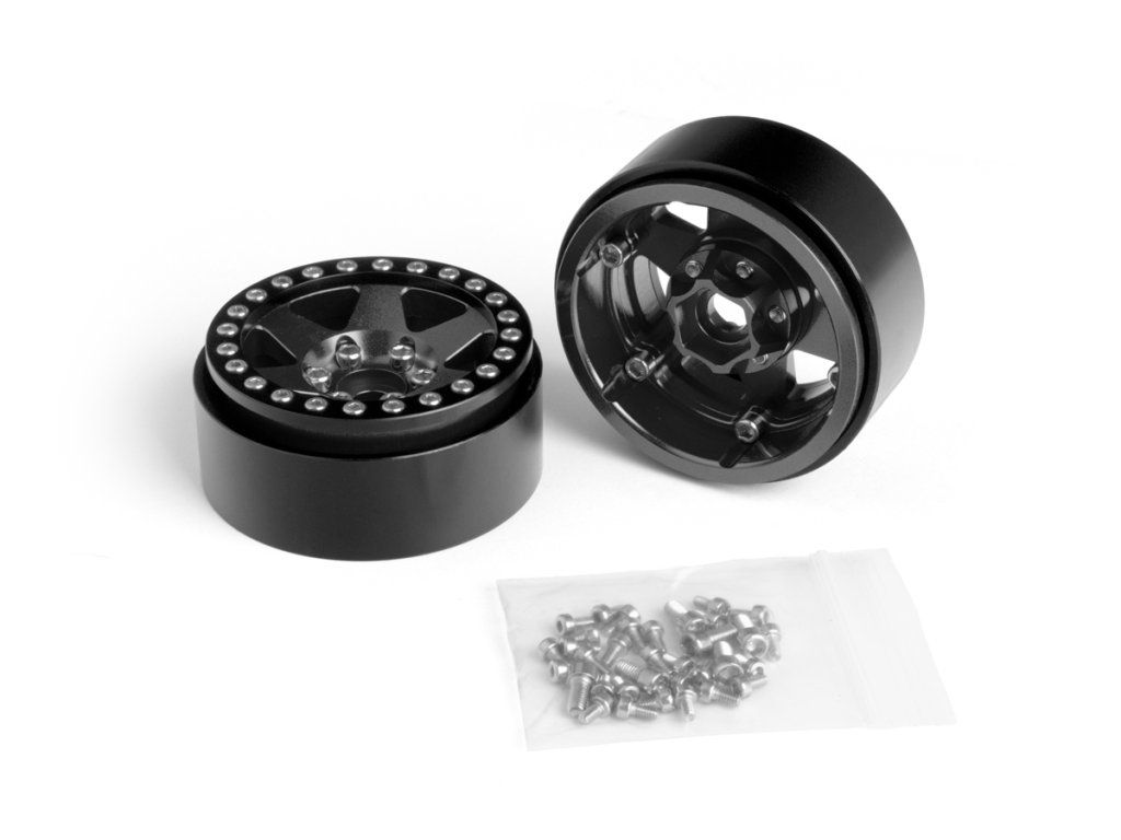 1.9'' Hliníkové beadlock disky šestipaprskové pro 1/10 crawler/expedice černé - 2 ks