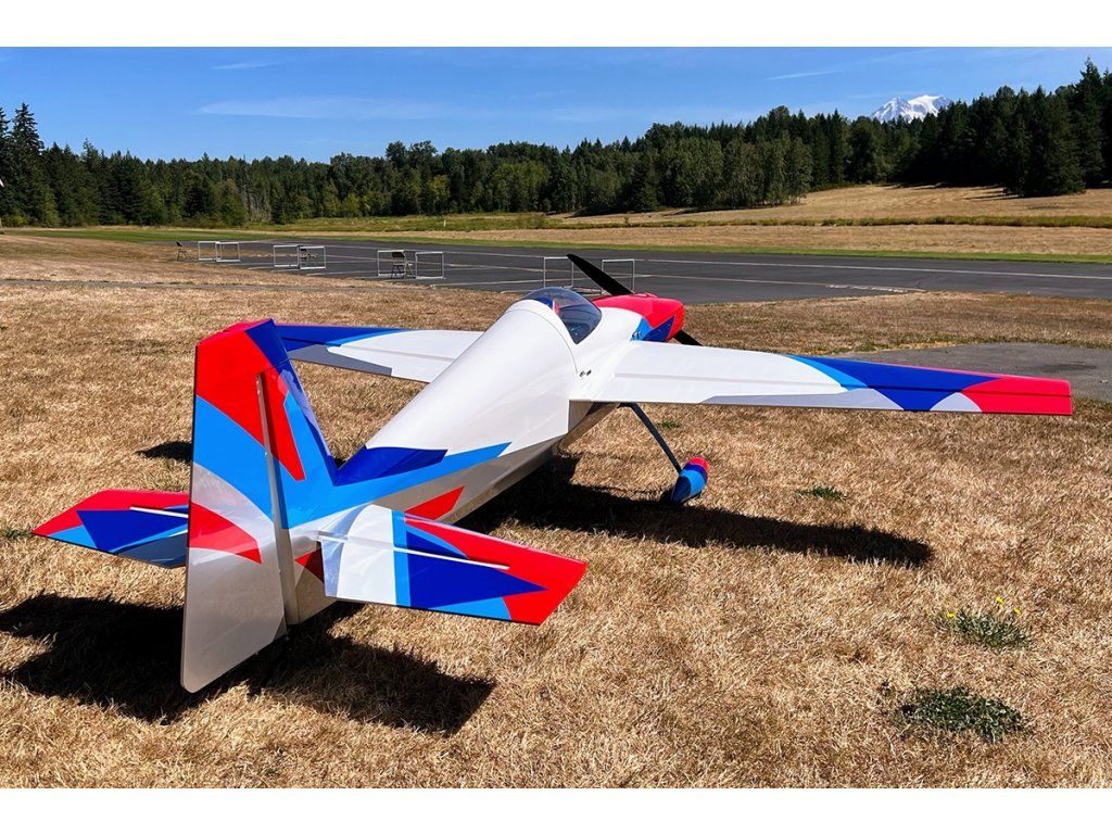 Sportovní polomaketa akrobatického letadla ve verzi 2 pro pohon benzínovým motorem 85-130 ccm pro zkušené piloty pro létání klasické přesné i extrémní 3D akrobacie.