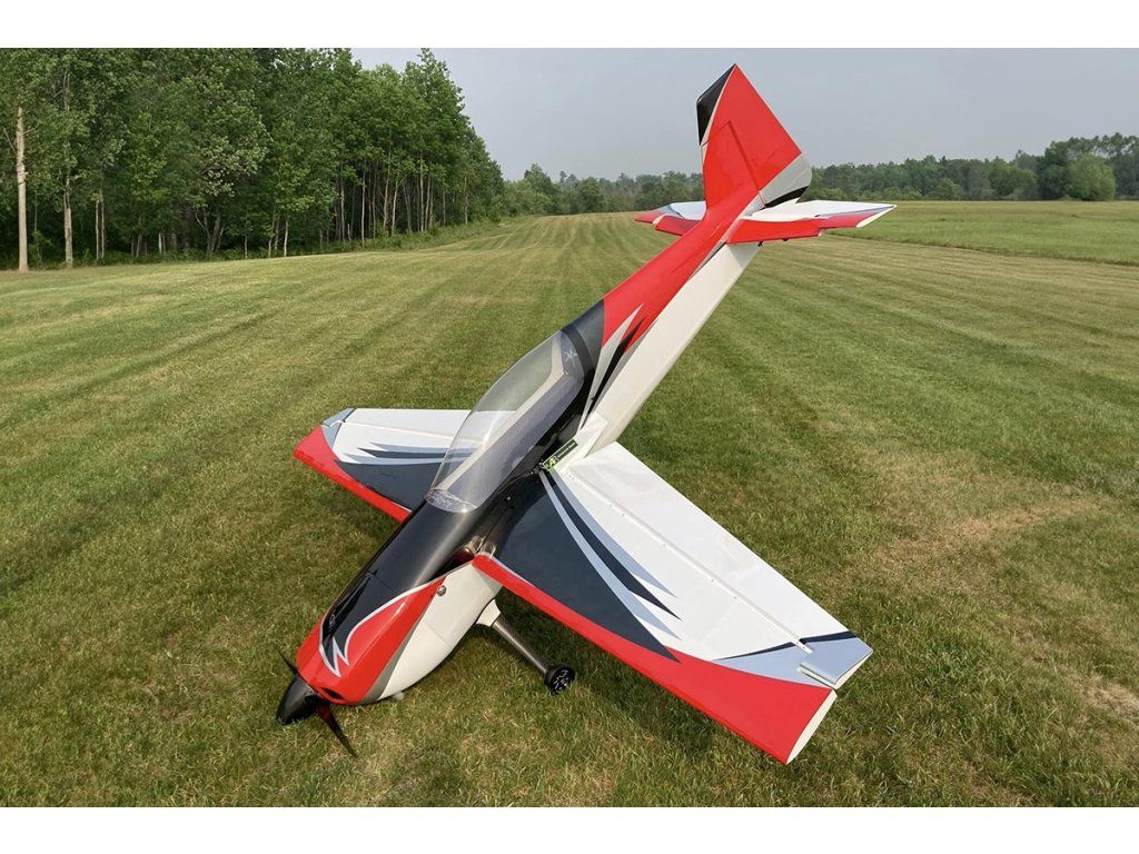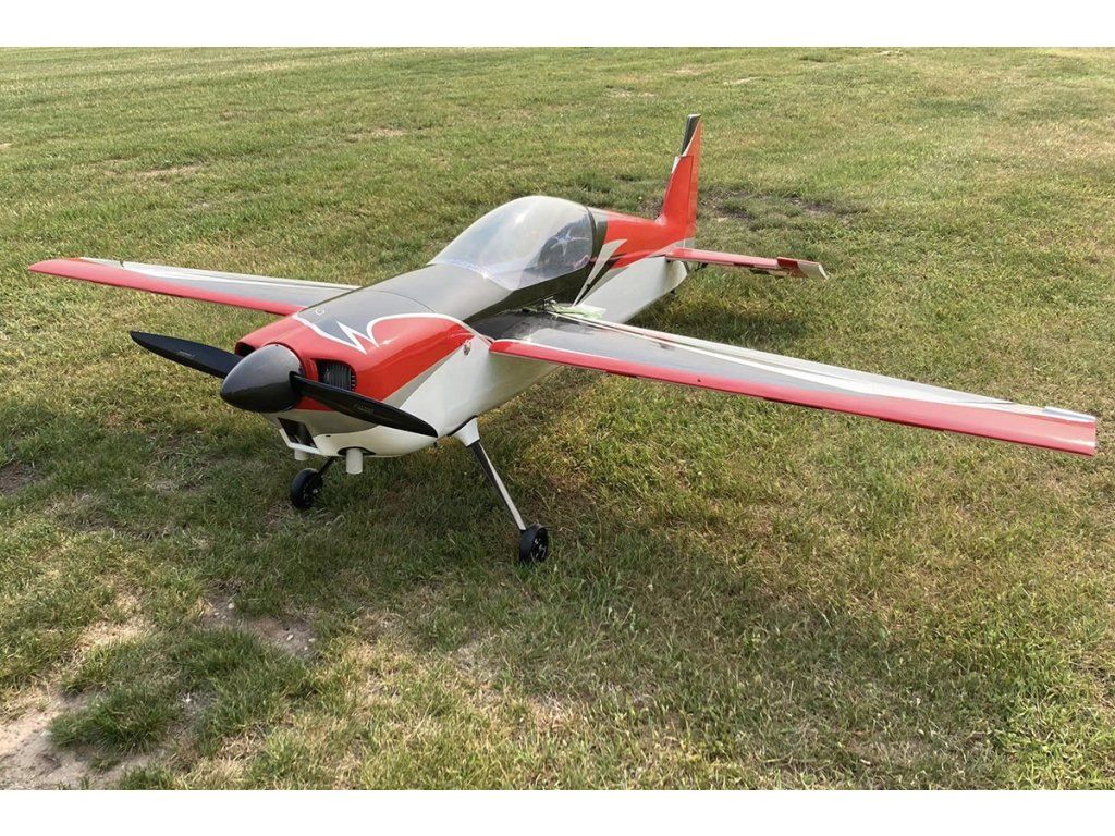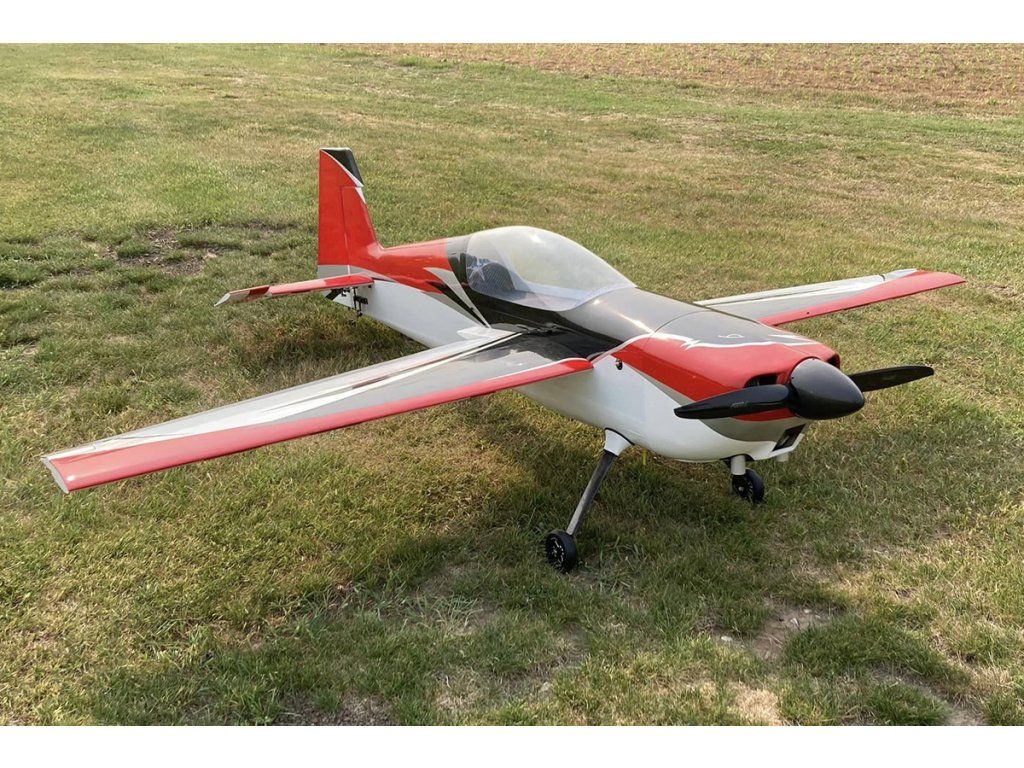 Sportovní polomaketa akrobatického letadla pro pohon benzínovým motorem 100-130 ccm pro zkušené piloty pro létání klasické přesné i extrémní 3D akrobacie.Trup modelu je klasické konstrukce z překližkových a balsových laserem vyřezávaných dílů vyztužených Kevlarem® a uhlíkem s odnímatelným laminátovým motorovým krytem a odnímatelnou horní částí trupu s kabinou pro dokonalý přístup k pohonnému systému a RC vybavení. Motor se upevňuje v zadní montáži na překližkové krabicové lože; pro případnou montáž laděného tlumiče výfuku je připraven tunel na spodní straně trupu.Dvoudílné křídlo se souměrným profilem (poloviny se nasouvají z boku na uhlíkovou trubkovou spojku a zajišťují šrouby) je rovněž klasické konstrukce s celobalsovým tuhým potahem. Křidélka s velkou plochou jsou ovládána 2 páry serv.Ocasní plochy jsou lehké celobalsové konstrukce, VOP je dvoudílná spolovinami stabilizátoru nasouvanými na uhlíkovou trubku. Poloviny výškovky jsou ovládány servy uloženými ve vodorovném stabilizátoru s krátkými přímými táhly. Směrovka je ovládána pomocí lankového náhonu. Celý model je potažen nažehlovací fólií ULTRACOTE® (to je obchodní značka používaná v USA pro dobře známé fólie Oracover®).Podvozek je ostruhového typu s uhlíkovými hlavními nohami, koly s laminátovými kryty a drátovou ostruhou s uhlíkovou konzolí spřaženou se směrovkou.Pro pohon budete potřebovat benzínový motor 100-130 ccm (např. GP-123).Pro ovládání modelu vyhoví nejméně devítikanálová počítačová RC souprava – možnost přesného nastavení „párových“ serv a naprogramování dvojích a exponenciálních výchylek ve správné velikosti je pro létání akrobacie – klasické přesné i extrémní 3D – zásadní.Serva vyhoví rychlá a velmi silná ve standardní velikosti – např. Futaba S9177SV, Hitec Hitec HS-7950TH, D980TW nebo HSB-9381TH a jedno standardní servo pro ovládání plynu.Stavebnice obsahuje: nažehlovací fólií potažený trup, křídlo a ocasní plochy, nastříkaný laminátový motorový kryt, sadu příslušenství, uhlíkový podvozek, ostruhu, kola a návod.| Rozpětí [mm] | 2693 |