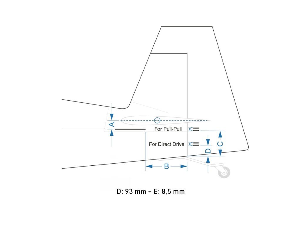 - Serva směrovky umístěná vzadu pod výškovkou - Náhon směrovky táhly (Push-Pull)
