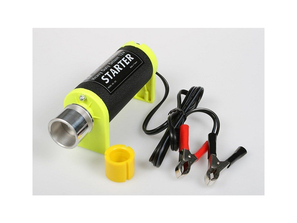 Univerzální startér(vhodný hlavně pro modely letadel) sestává z elektromotoru s velkým točivým momentem, který je opatřen spínačem a adaptérem s pryžovou vložkou. Startovat můžete přitlačením adaptéru s vložkou na vrtulový kužel (průměru aspoň 38 mm). Pro startování motorů pomocí klínového řemenu v autech nebo lodích bývají adaptéry vybaveny vybráním nebo je možno na adaptér nasunout plastovou startovací vložku („talíř“). Pro startování motorů s malým kuželem nebo duralovou kuželovou maticí je třeba vložku obrátit.