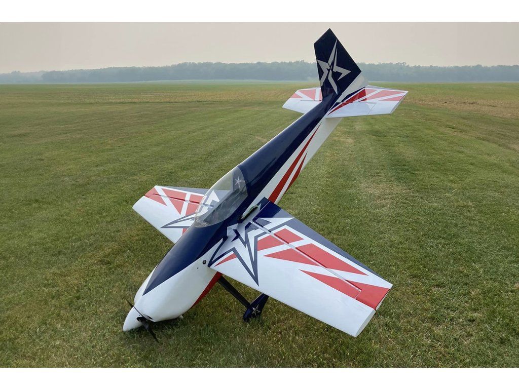 Sportovní polomaketa akrobatického letadla pro pohon střídavým elektromotorem 850-1200 W a 4-6S LiPo pro zkušené piloty pro létání klasické přesné i extrémní 3D akrobacie.Trup modelu je klasické konstrukce z překližkových a balsových laserem vyřezávaných dílů vyztužených Kevlarem® a uhlíkem s odnímatelným laminátovým motorovým krytem a odnímatelnou horní částí trupu s kabinou pro dokonalý přístup k pohonnému systému a RC vybavení. Motor se upevňuje v zadní montáži na překližkové krabicové lože.Dvoudílné křídlo se souměrným profilem (poloviny se nasouvají z boku na uhlíkovou trubkovou spojku a zajišťují šrouby) je rovněž klasické konstrukce s celobalsovým tuhým potahem. Křidélka s velkou plochou jsou ovládána 2 nezávislými servy. Konce křídel můžete opatřit dodávanými SFG winglety. Ocasní plochy jsou celobalsové konstrukce, VOP je jednodílná se stabilizátorem vlepeným do trupu. Výškovka i směrovka je ovládána servem uloženým v ocasní části trupu s krátkým přímým táhlem.Celý model je potažen nažehlovací fólií ULTRACOTE (to je obchodní značka používaná v USA pro dobře známé fólie Oracover). Podvozek je ostruhového typu s uhlíkovými hlavními nohami, lehkými koly s laminátovými kryty a drátovou ostruhou s uhlíkovou konzolí spřaženou se směrovkou.Pro pohon budete potřebovat střídavý elektromotor 850-1200 W - např. KAVAN PRO 3548-750 s vrtulí 13x6,5“ s 60-80 A regulátorem otáček napájený z 4S LiPo akumulátoru 2600-2800 mAh se zatížitelností aspoň 40C nebo KAVAN PRO 3548-500 s vrtulí 13x6,5“ s 50-70 A regulátorem otáček napájený z 6S LiPo akumulátoru 1800-2200 mAh se zatížitelností aspoň 40C.Pro ovládání modelu vyhoví nejméně čtyřkanálová počítačová RC souprava – možnost naprogramování dvojích a exponenciálních výchylek ve správné velikosti je pro létání akrobacie – klasické přesné i extrémní 3D – zásadní.Serva vyhoví rychlá a silná v mini velikosti – např. KAVAN GO-1035MG apod.Stavebnice obsahuje: nažehlovací fólií potažený trup, křídlo a ocasní plochy, nastříkaný laminátový motorový kryt, kompletní sadu příslušenství, uhlíkový podvozek, ostruhu, lehká kola a návod.Doplňkové parametry