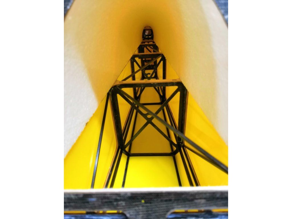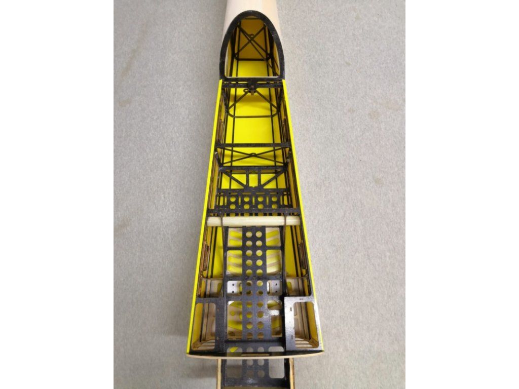 Zesílený trup a křídla překližkou přelaminovanou uhlíkem, a uhlíkovými nosníky.Kabina upevněna bez šroubů pomocí nového rychle uvolňovacího systému - Skvělé pro rychlé výmněny baterie.
