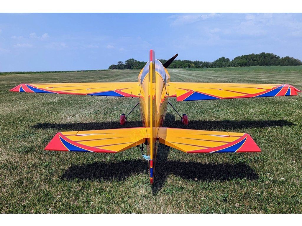 Sportovní polomaketa ruského akrobatického letadla pro pohon benzínovým motorem 50-61 ccm nebo elektromotorem s napájením 12s Lipo pro zkušené piloty pro létání klasické přesné i extrémní 3D akrobacie.