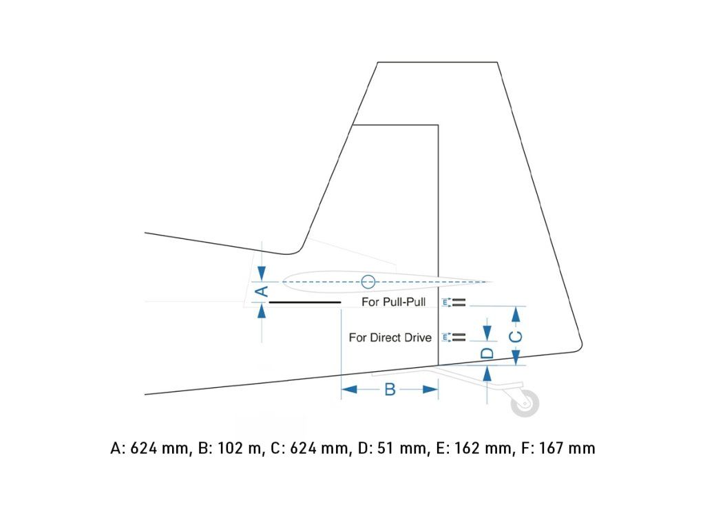 - Servo směrovky umístěné v zadní části trupu pod VOP - Náhon SOP táhlem