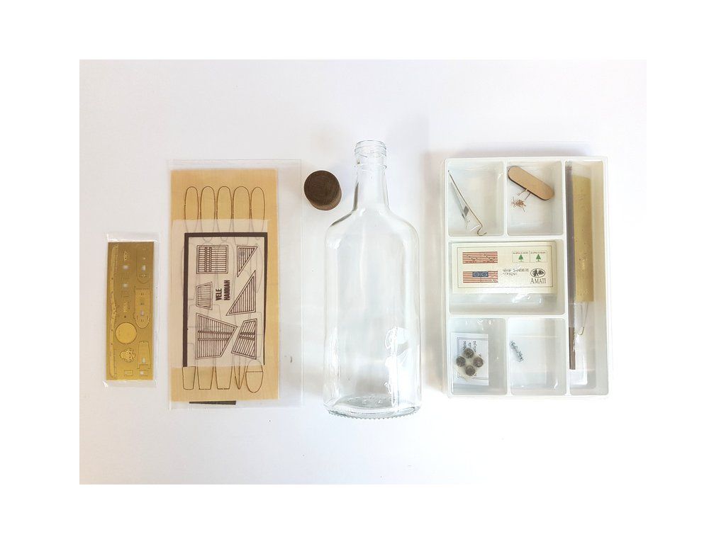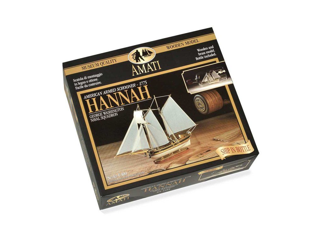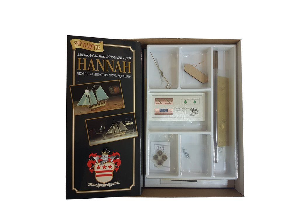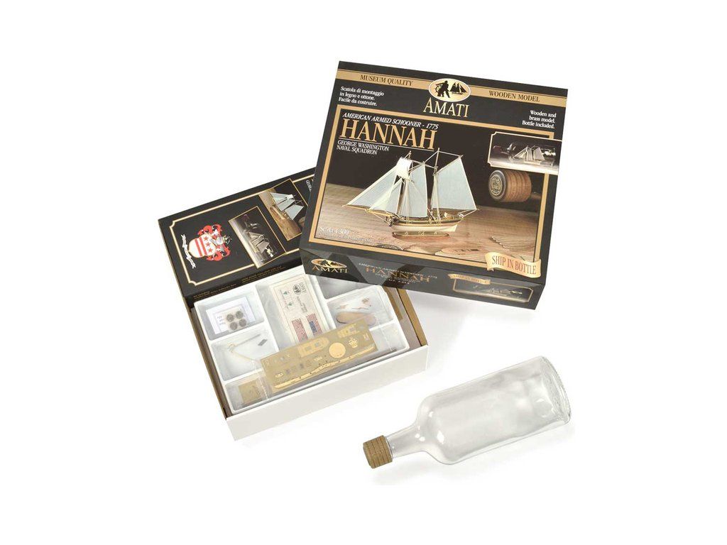 Sníte o historické lodi ve skleněné láhvi? Krásná dekorace AMATI Hannah 1:300 obsahuje vše pro sestavení a vy si můžete dopřát to potěšení a uskutečnit stavbu své lodi v láhvi. Laserem řezané dřevěné díly, mosazná paluba, kýl, kování, ozdobné prvky a krásná skleněná láhev, vše je součástí sady.
