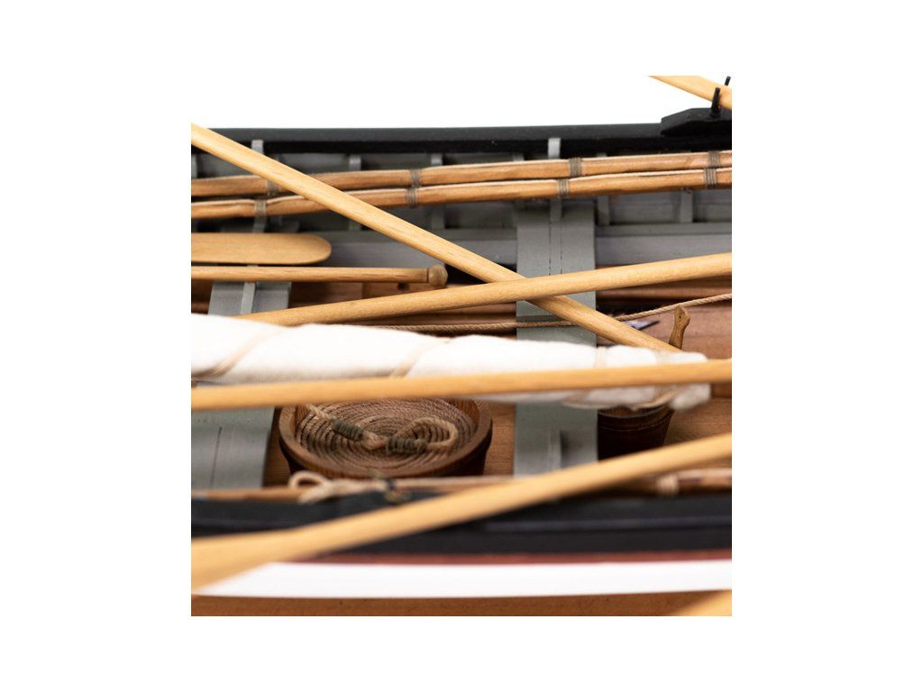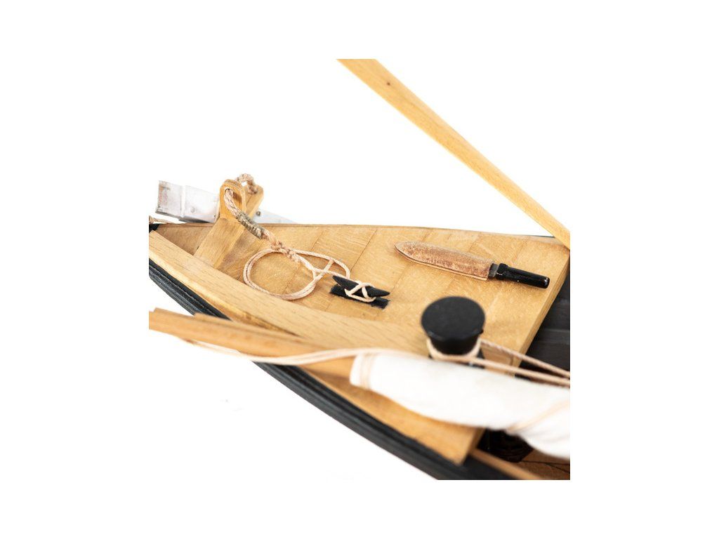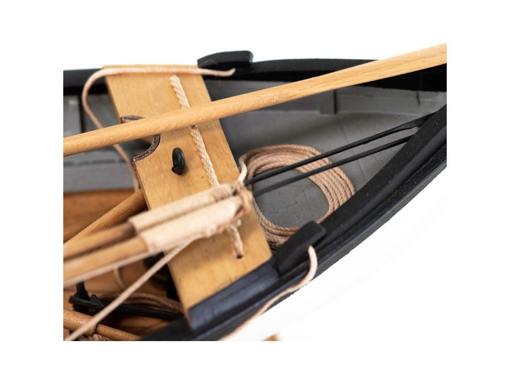 Stavebnice statické makety lodi, AMATI Walfangboot harpunářský člun z roku 1860 v měřítku 1:16, kit. Maketa harpunářského člunu je postavena z dřevěných laserem řezaných dílů. Součástí jsou dřevěné, lité a kovové tvarovky, stožár, plachtovina, plány a český návod ke stavbě.