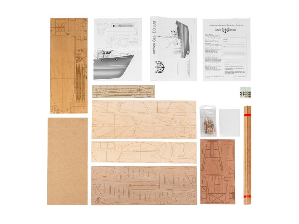 Andrea Gail má trup klasické dřevěné konstrukce z laserem vyřezávaných dílů s plaňkovanou obšívkou doplněnou balsovými bloky, dřevěnou palubu a nástavbu. Stavebnice obsahuje všechny dřevěné a plastové díly potřebné pro dokončení modelu, maketové příslušenství (např. poziční světla, kotvu, lodní šroub atd.).