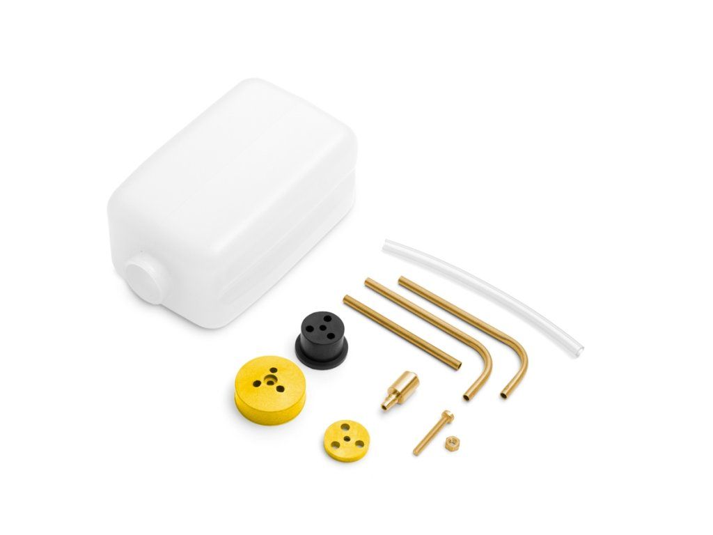Lehká ale pevná nylonová nádrž 227 ml pro žhavící palivo s odolným víčkem, gumovou zátkou a opěrnou deskou. Předohýbané mosazné fitinky a sací závaží, silikonová hadička. Rozměry (bez hrdla a víčka): 97x60x48 mm, hmotnost: 41g.Doplňkové parametry