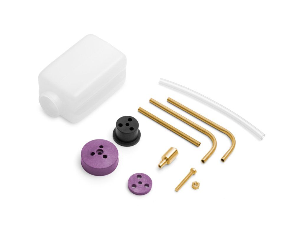 Lehká ale pevná nylonová nádrž 55 ml pro žhavící palivo s odolným víčkem, gumovou zátkou a opěrnou deskou. Předohýbané mosazné fitinky a sací závaží, silikonová hadička. Rozměry (bez hrdla a víčka): 61x41x33 mm, hmotnost: 29g.Doplňkové parametry