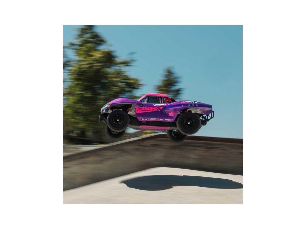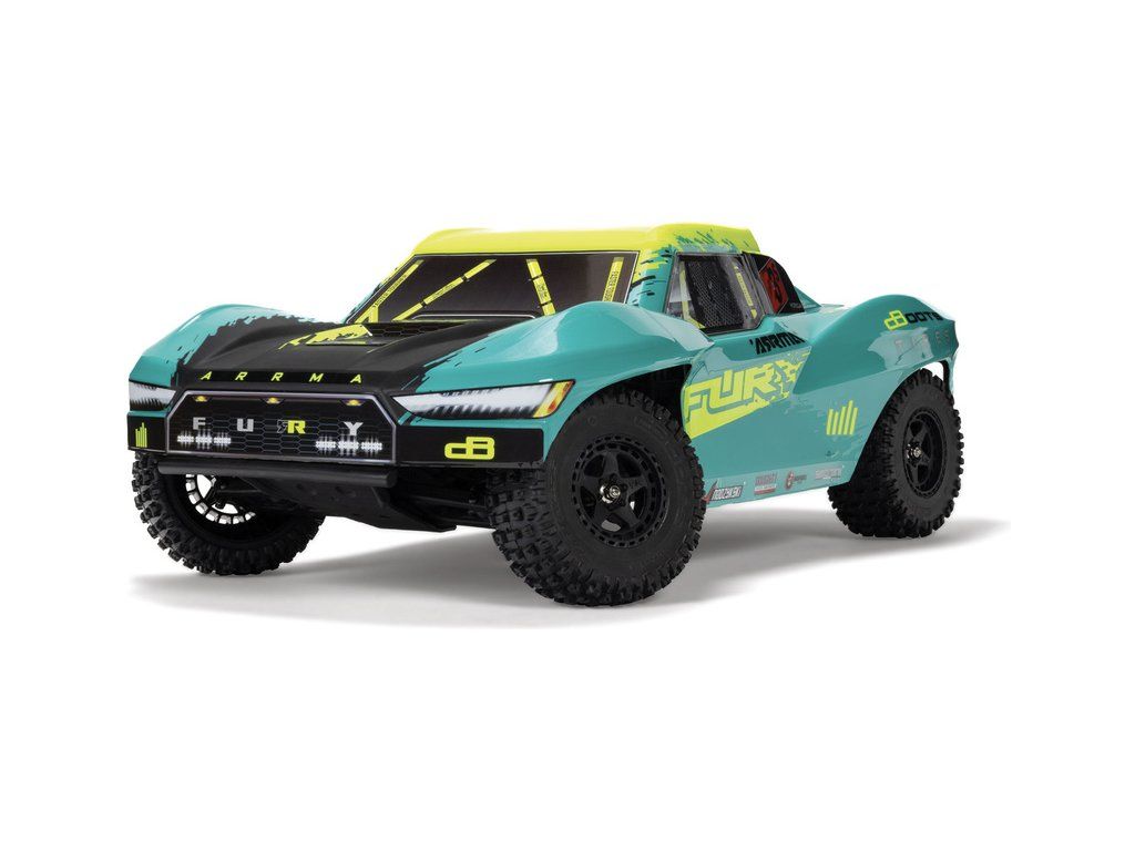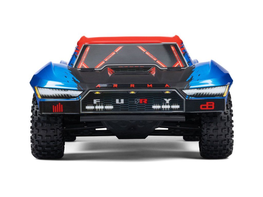 RC model auta Arrma Fury 223S BLX v měřítku 1:10, s náhonem 2WD, výkonným střídavým motorem a rychlostí až 80 km/h. Nezávislé zavěšení, olejové tlumiče, řídící jednotka Spektrum 45A SLT 2-3S LiPo, elektronická stabilizace DSC.