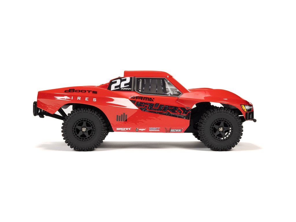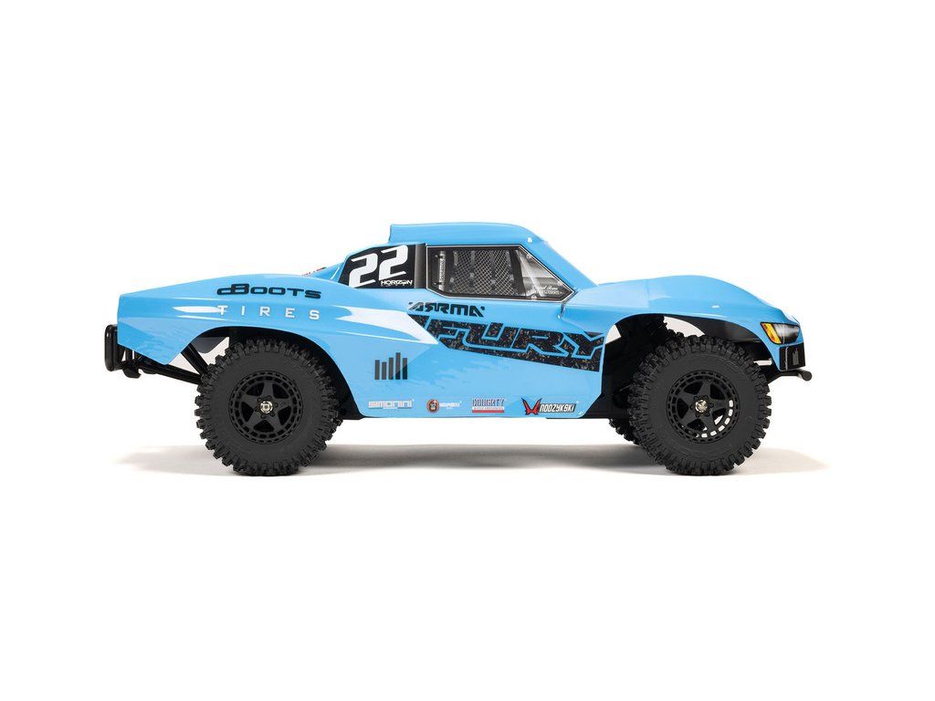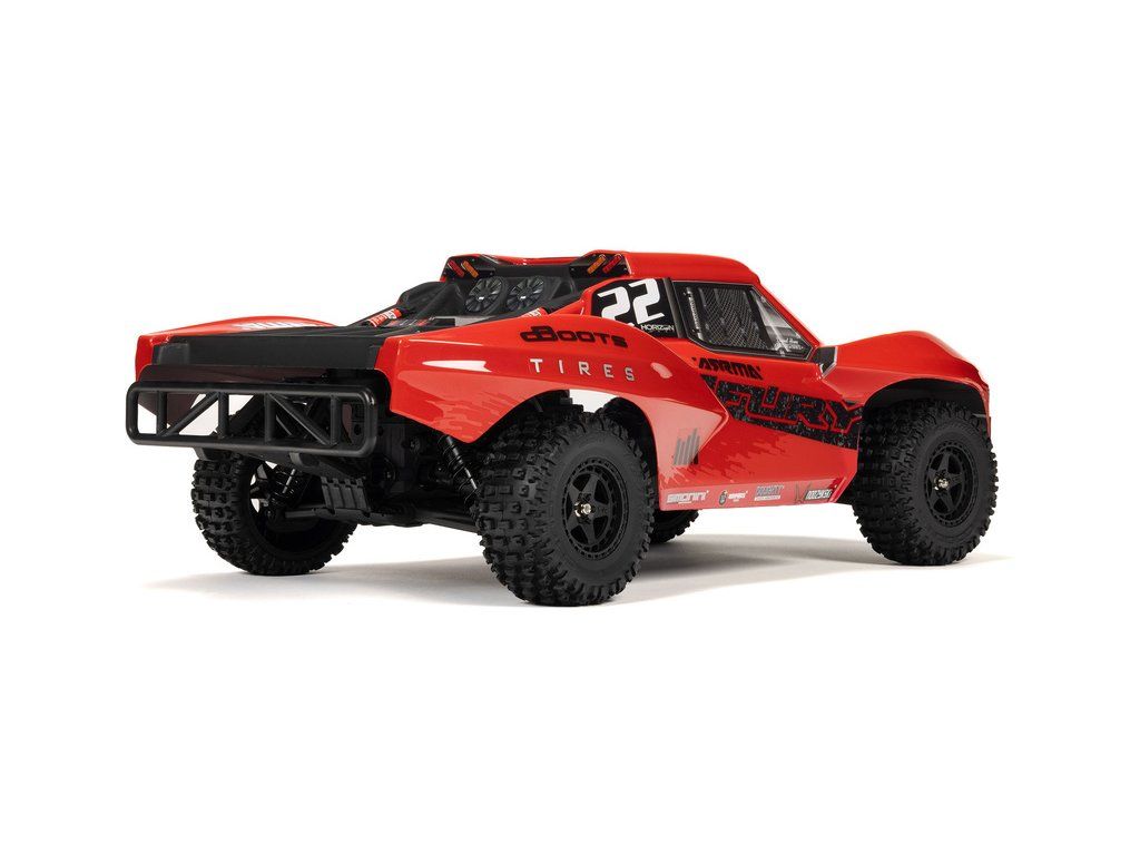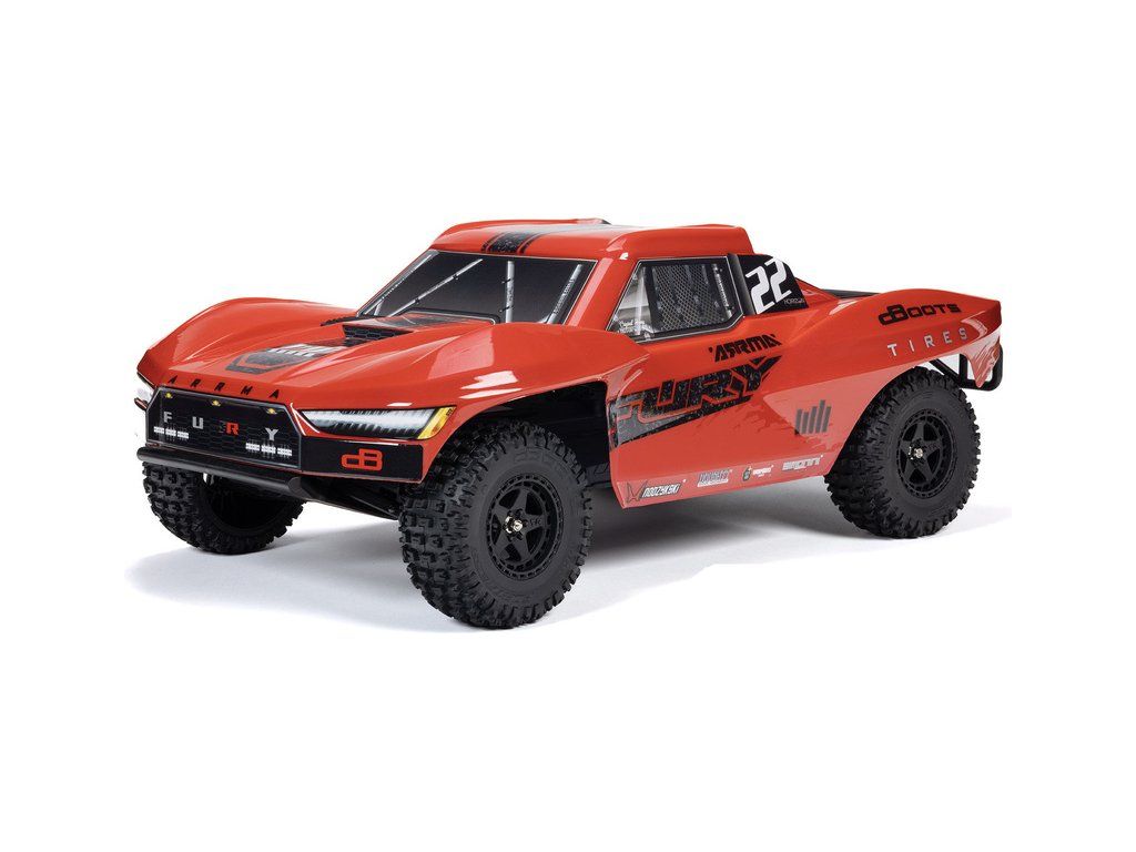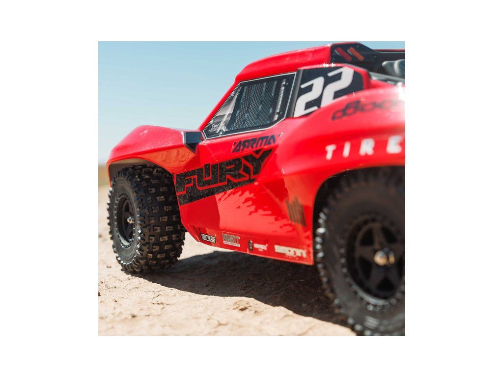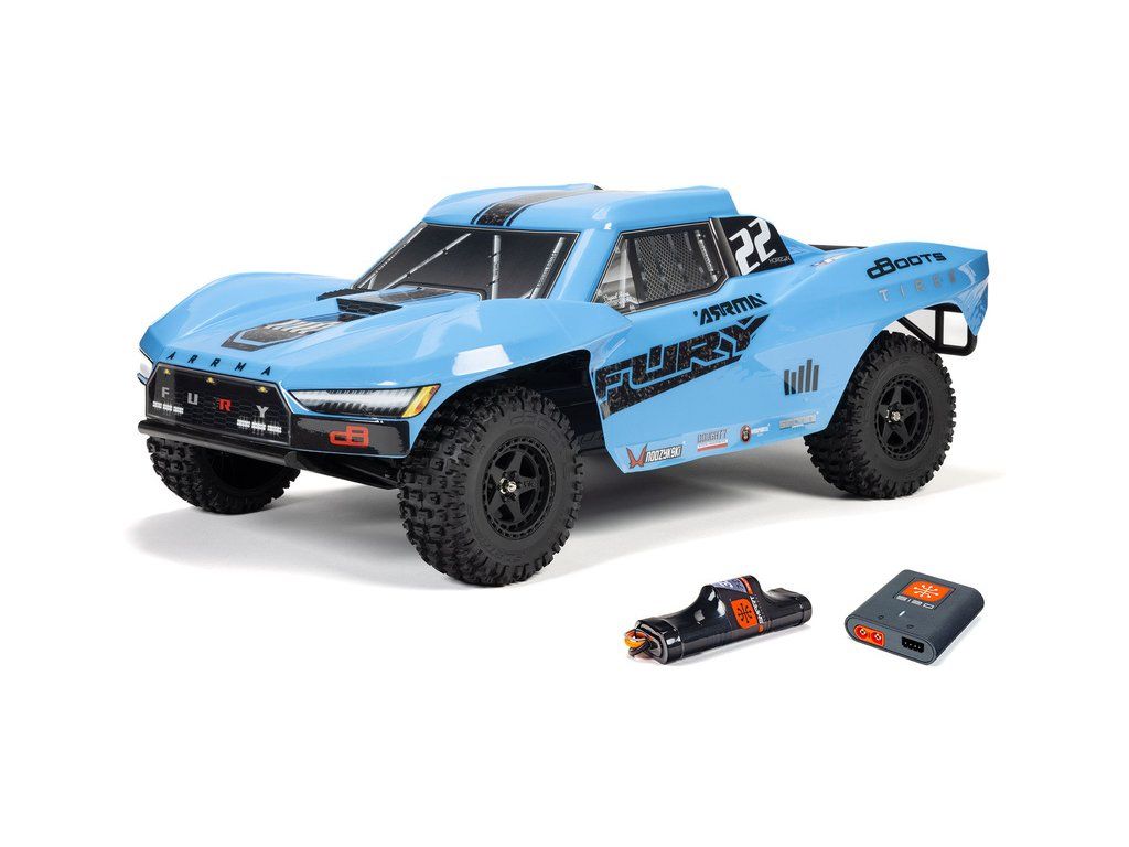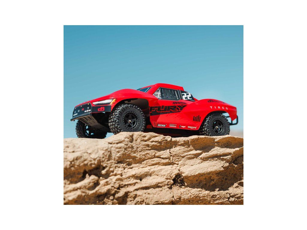 RC model Arrma Fury Mega 550 1:10 RTR je cenově dostupné auto na dálkové ovládání typu Short Course s náhonem 2WD, nezávislým zavěšením, olejovými tlumiči, proporcionálním řízením a stejnosměrným motorem. RC souprava SLT 2.4 GHz. V balení NiMH akumulátor a USB-C nabíječ.