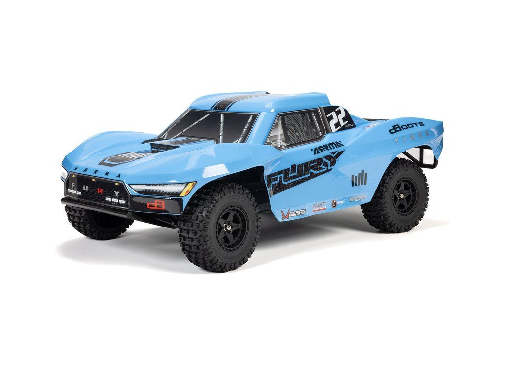 RC model Arrma Fury Mega 550 1:10 RTR je cenově dostupné auto na dálkové ovládání typu Short Course s náhonem 2WD, nezávislým zavěšením, olejovými tlumiči, proporcionálním řízením a stejnosměrným motorem. RC souprava SLT 2.4 GHz. V balení NiMH akumulátor a USB-C nabíječ.