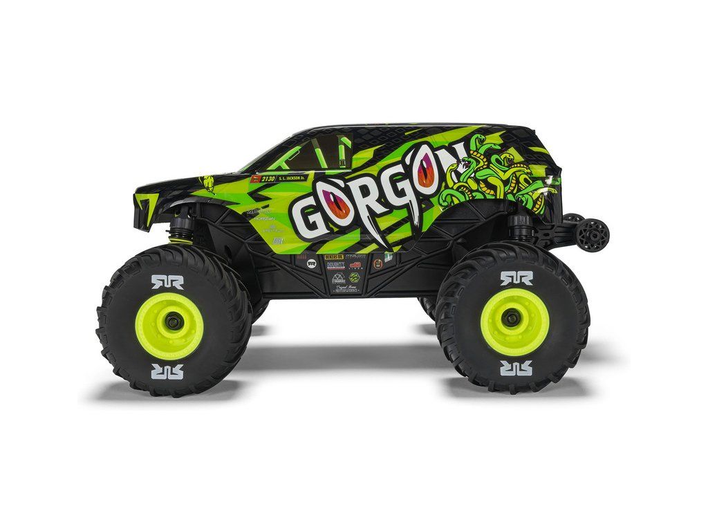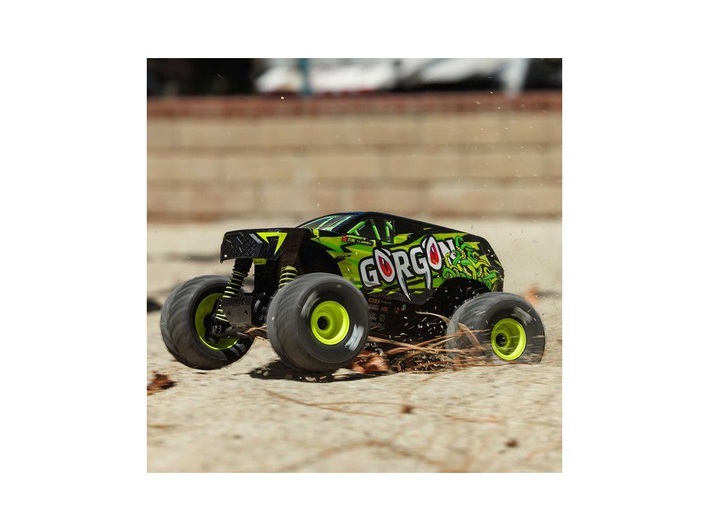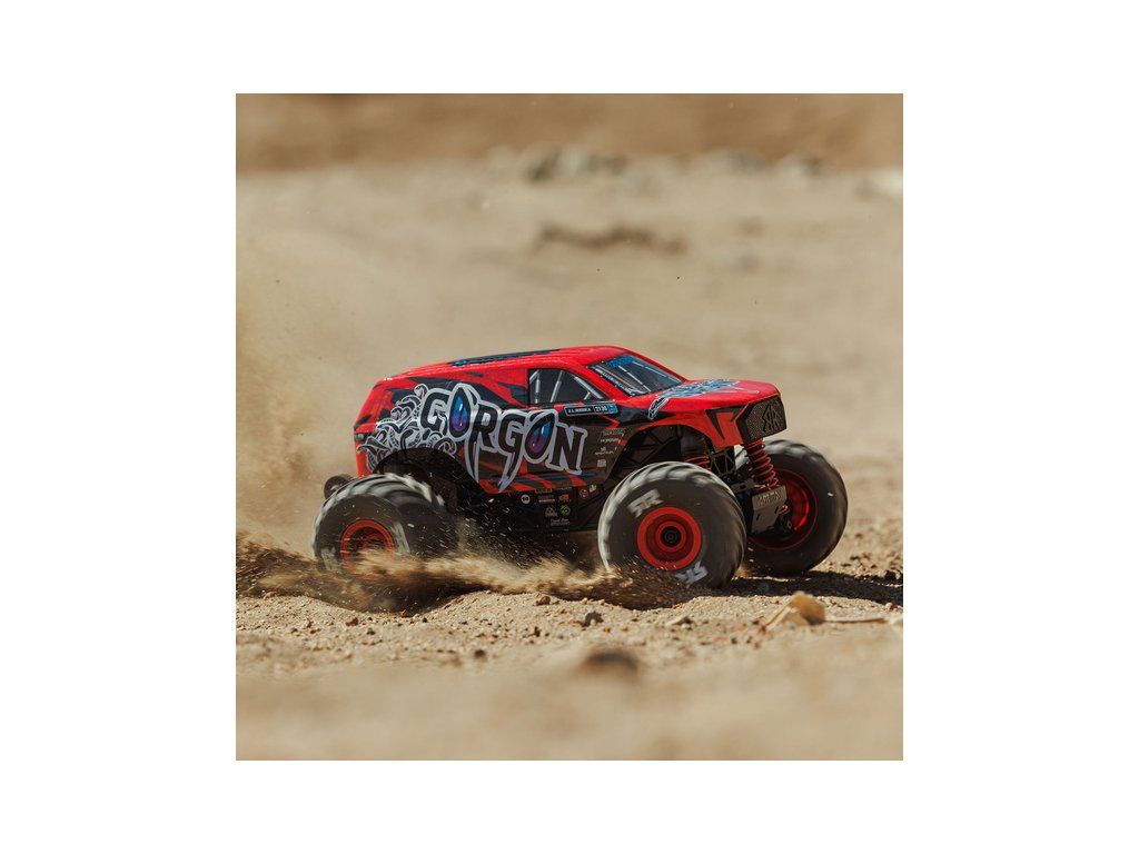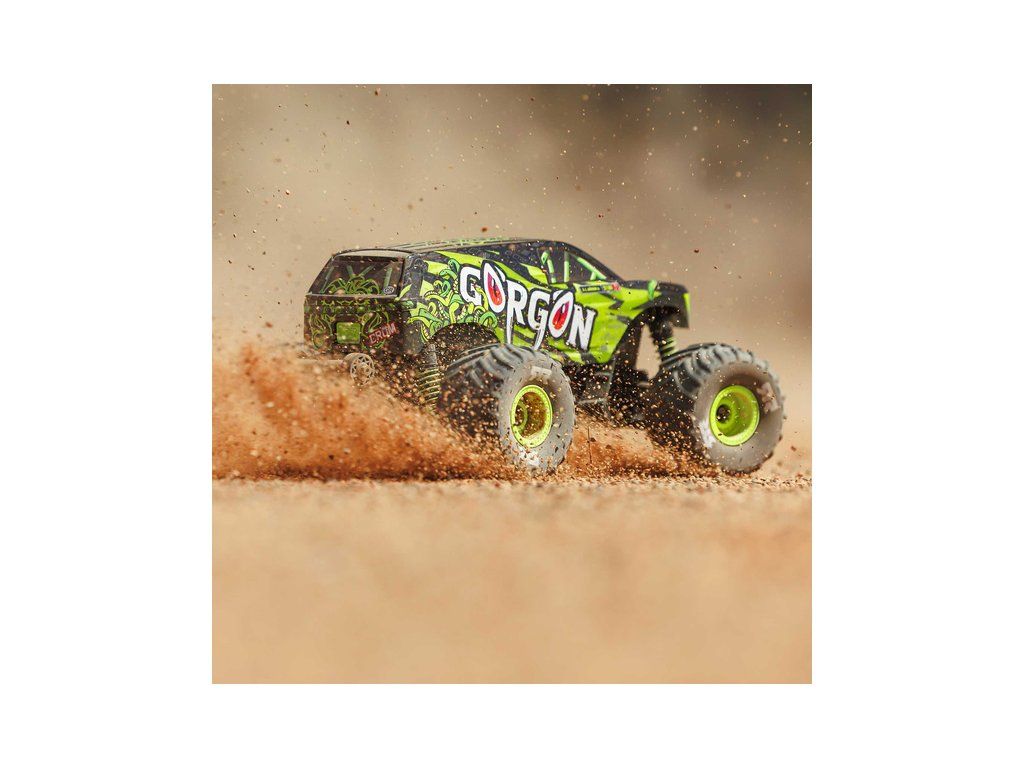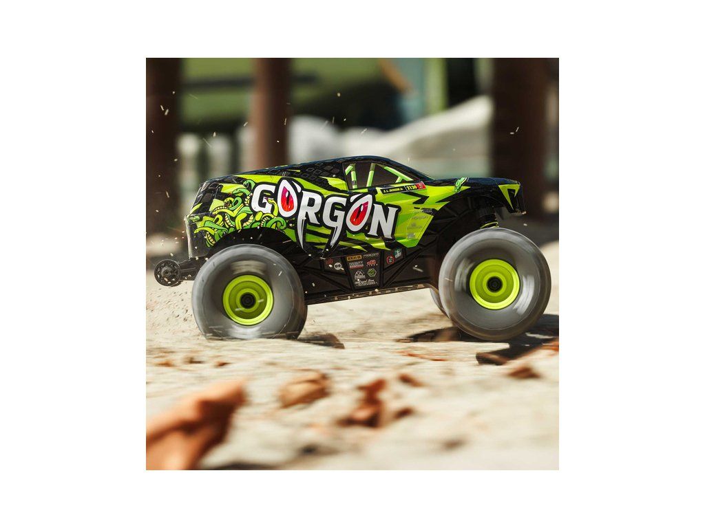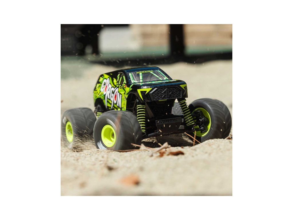 RC model auta Arrma Gorgon Grom v měřítku 1:16, s náhonem 4WD, funkcemi Smart a rychlostí až 30 km/h. Precizně zkonstruovaný malý zábavný model oblíbeného typu monster truck. Stylová karoserie, kompletně připraven k jízdě, včetně baterie a nabíječe.