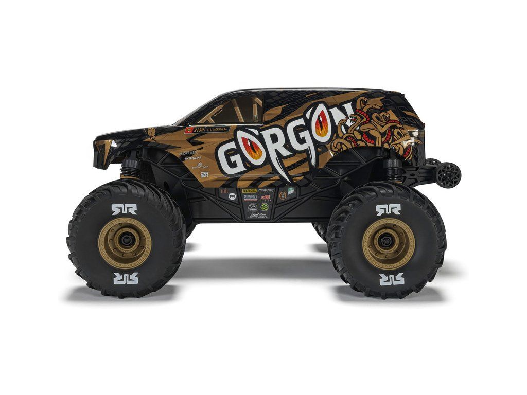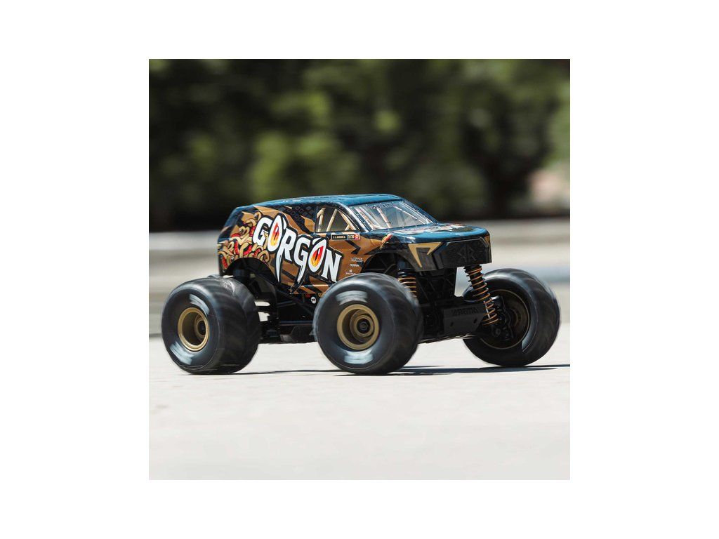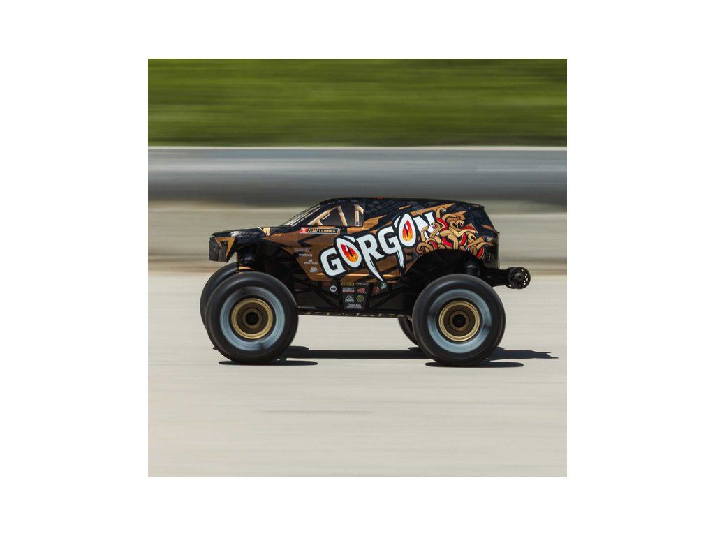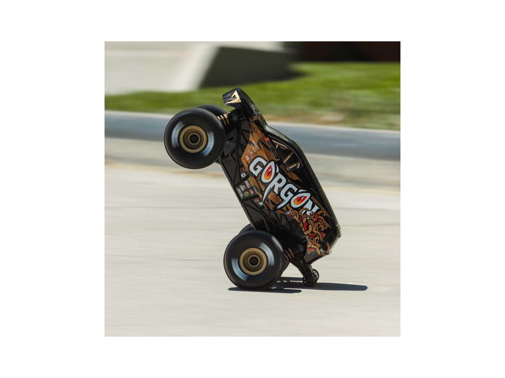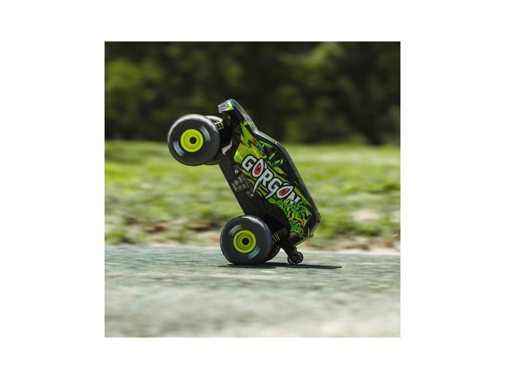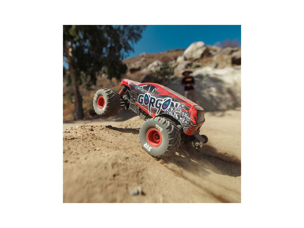 RC model auta Arrma Gorgon Grom v měřítku 1:16, s náhonem 4WD, funkcemi Smart a rychlostí až 30 km/h. Precizně zkonstruovaný malý zábavný model oblíbeného typu monster truck. Stylová karoserie, kompletně připraven k jízdě, včetně baterie a nabíječe.