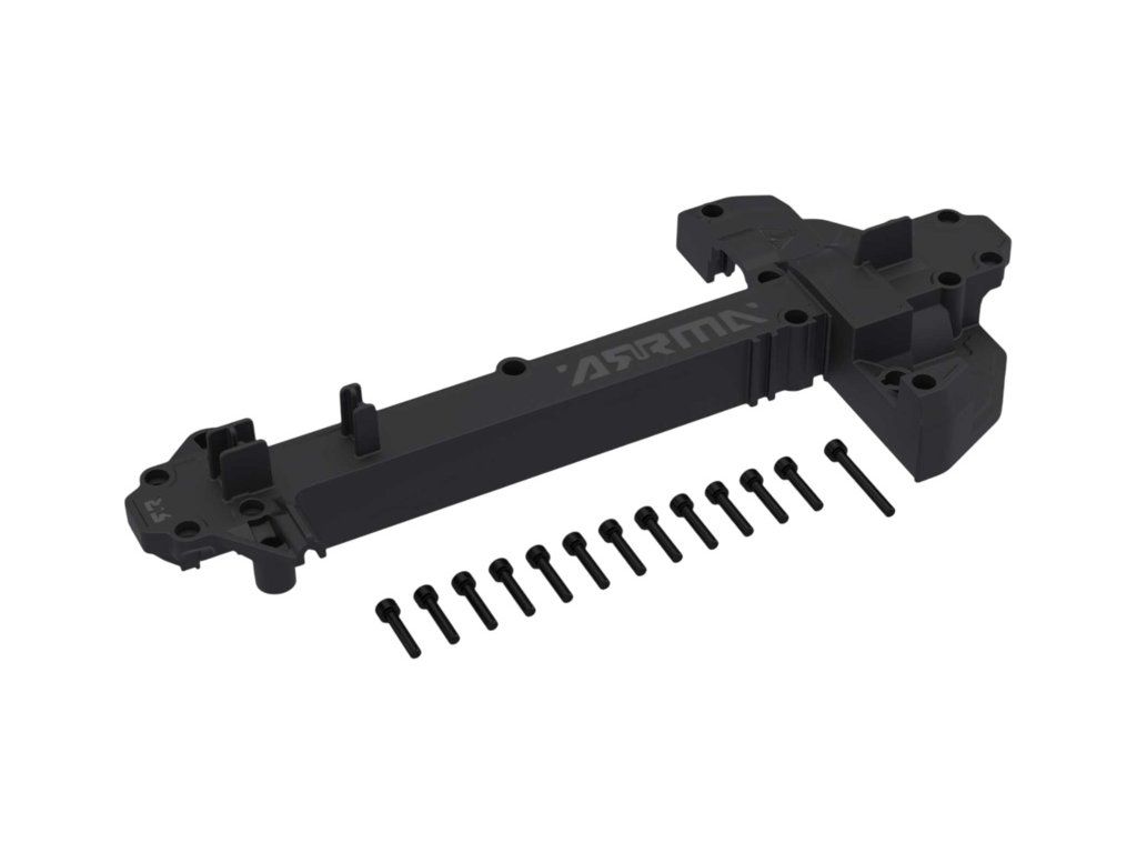 Náhradní díl pro RC modely aut Arrma Mini 1:16 (Mini Kraton): horní deska šasi kompozitová. Šroub M2.5x12mm (12), M2.5x20mm (1).