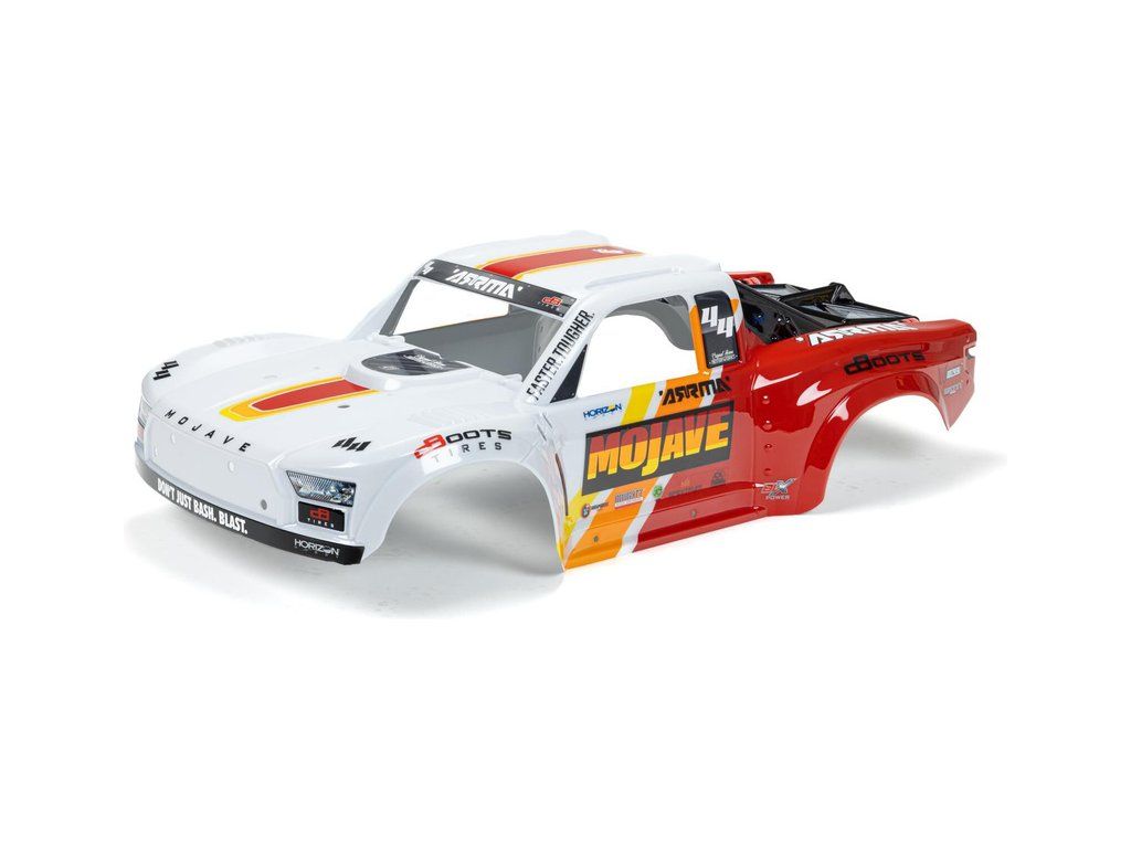 RC model pouštního závodního vozu - Arrma Mojave 4S BLX 1:8 RTR se střídavým motorem, jede rychlostí až 80 km/h. Odolné kompozitní šasi, pohonné ústrojí nově se středovým...