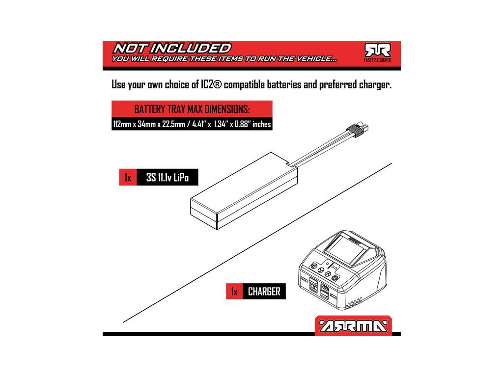 K provozu modelu je nutné doplnit akumulátor 3S LiPo 2000 mAh s konektorem IC2/EC2 a vhodný nabíječ.
