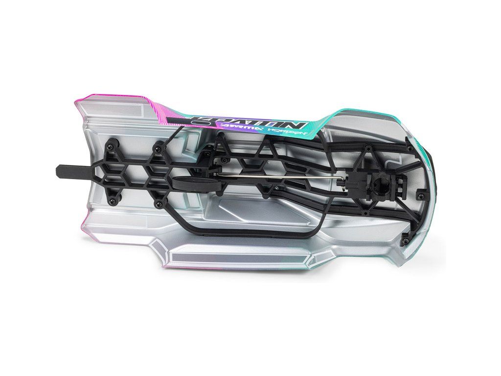 V balení naleznete hotový sestavený RC model Mini Kraton 3S s nainstalovanými komponenty: střídavý motor Spektrum Firma 2848 3000 Kv, řídicí jednotka Spektrum SLT DSC 2-v-1 40A, servo Spektrum SX114 MG 20T. Vysílač Spektrum 2.4GHz SLT2 DSC, LiPo akumulátor Spektrum Smart 3S 2000mAh 30C IC2, USB-C nabíječ Spektrum LiPo G2 Smart S22 2-3S 20W IC2, 4ks AA baterie pro vysílač. Příslušenství: karta s klíčem PowerKey, klíč imbus, šroubovák imbus, křížový klíč. Návod CZ a manuál EN, DE, FR.