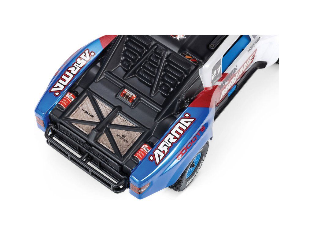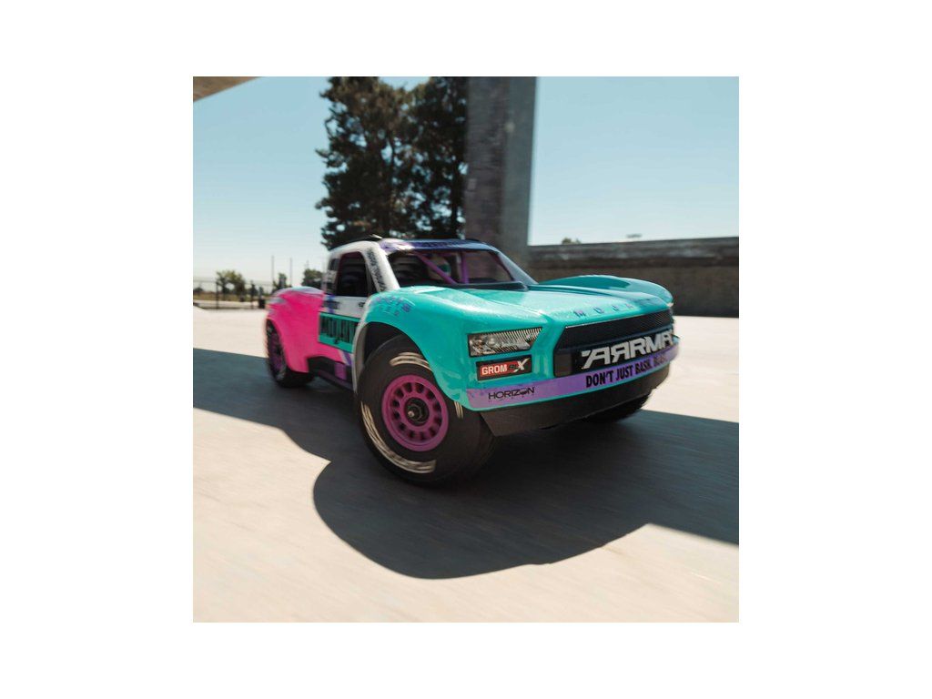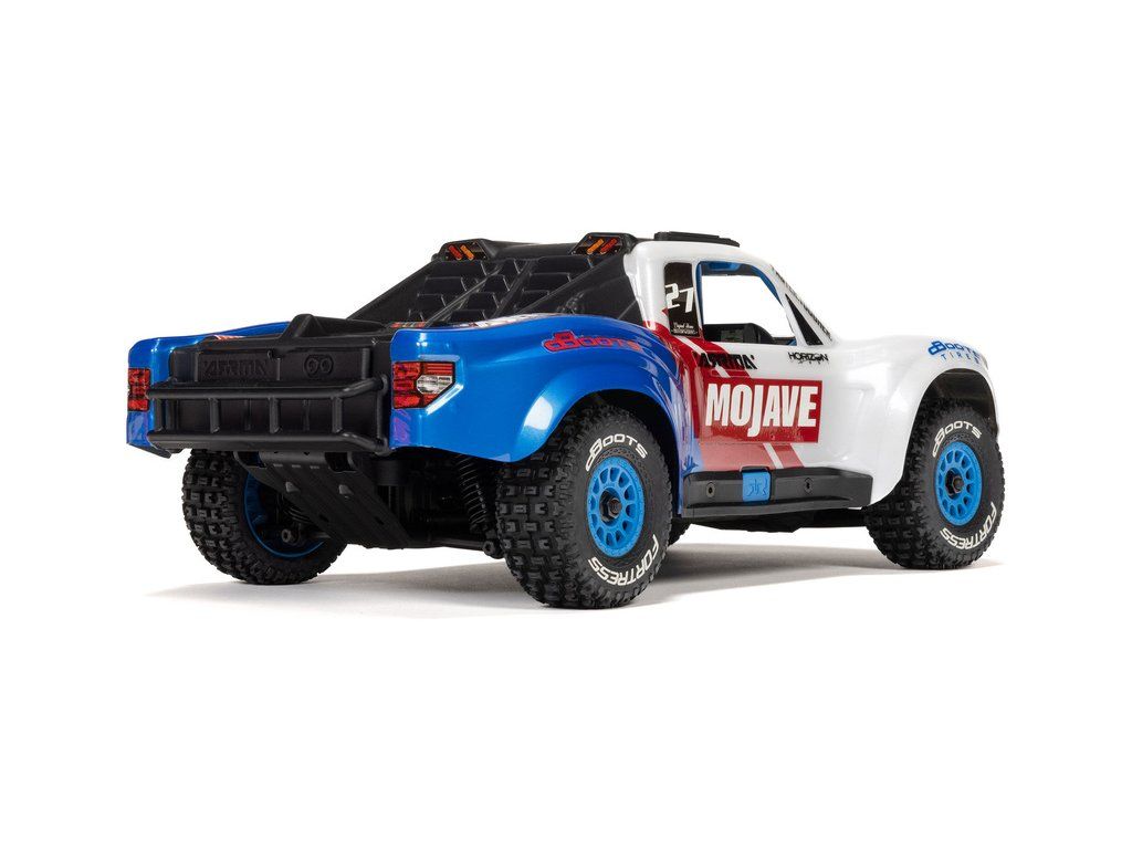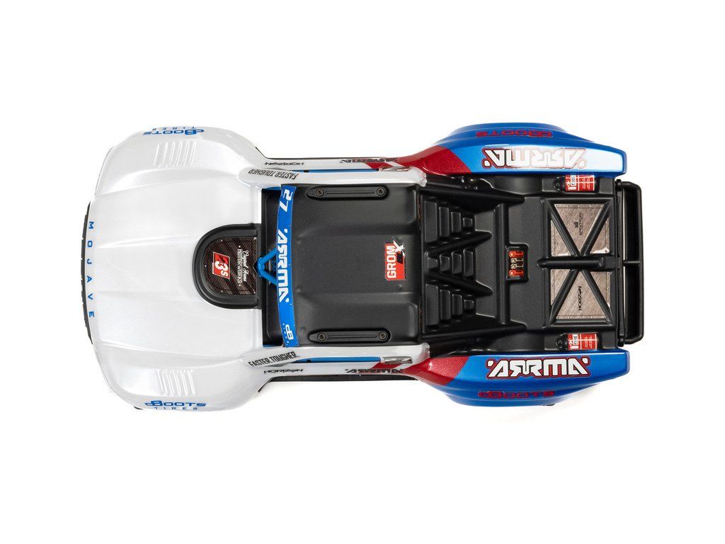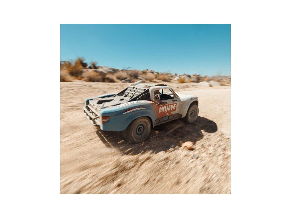 RC model auta Arrma Mojave Grom v měřítku 1:16, s náhonem 4WD, výkonným střídavým motorem a rychlostí až 56 km/h. Precizně zkonstruovaný malý zábavný model pouštního Off-roadu. Továrně instalované upgrady, stabilizace DSC. Včetně baterie 2S LiPo a USB nabíječe.