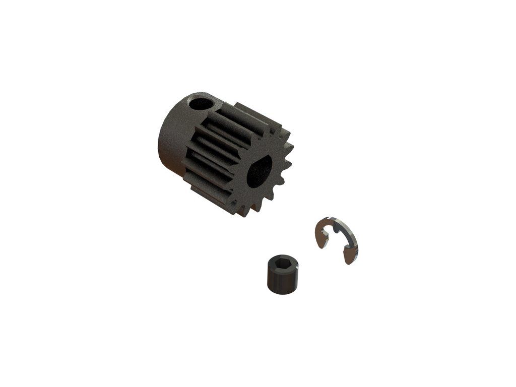 Tuningový díl pro RC modely aut Arrma 3S 4WD Bigrock, Granite, Senton, Typhon: pastorek 15T 0.8M Safe-D5. Otvor pro hřídel s ploškou ve tvaru D zajistí pevné spojení i když se uvolní pastorek.