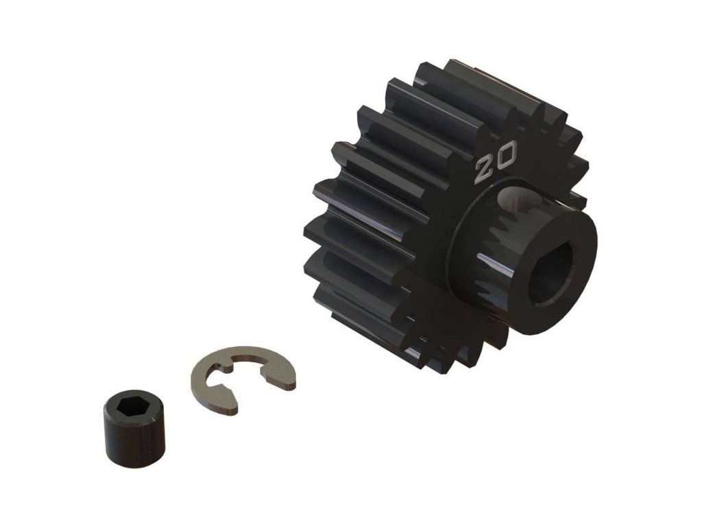 Arrma pastorek na hřídel 5 mm s 20 zuby a modulem ozubení 1 mm pro RC model auta Arrma Kraton 8S BLX. Vyrobeno z sintrované oceli. Součástí balení je červík.