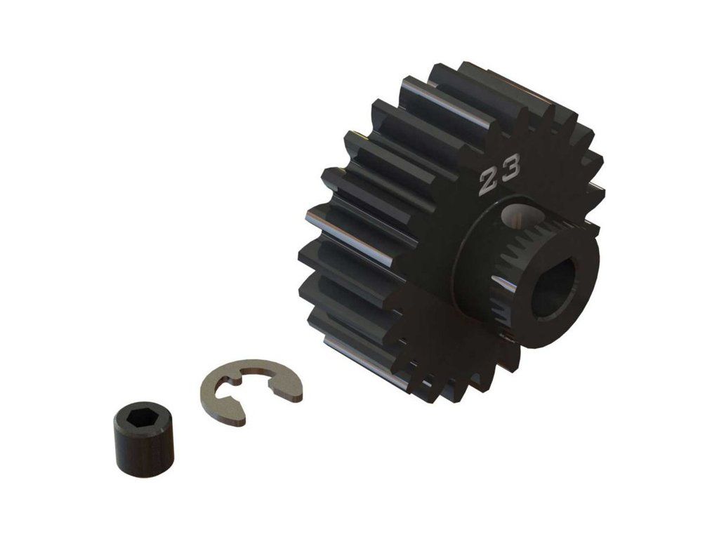 Arrma pastorek na hřídel 5 mm s 23 zuby a modulem ozubení 1 mm pro RC model auta Arrma Kraton 8S BLX. Vyrobeno z sintrované oceli. Součástí balení je červík.