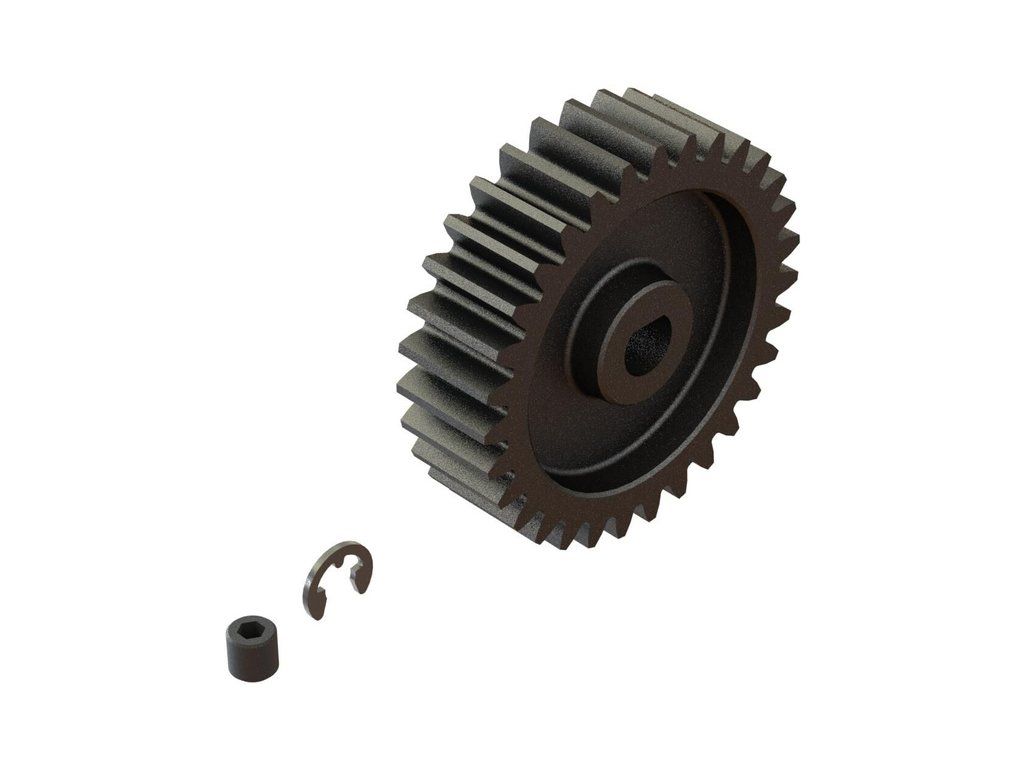 Arrma ocelový pastorek 31 zubů, modul M1, otvor Safe-D5. Otvor ve tvaru 'D' odpovídá profilu hřídele motoru s hřídelí 5mm a drážkou, proto se nemůže pastorek na hřídeli protočit. Stavěcí šroub - M4 x 4mm, segrovka 3,2mm. Precizně vyrobený široký profil zubu pro hladký chod.