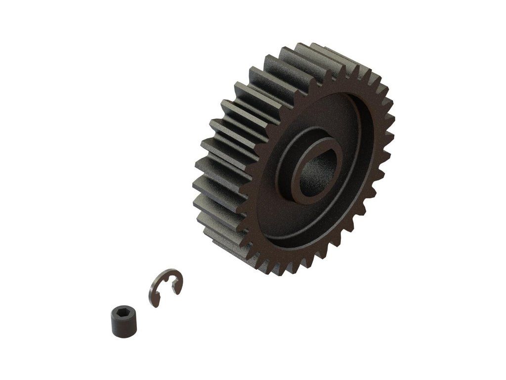Arrma pastorek 32 zubů, na D hřídel 5 mm a modulem ozubení M1 pro RC modely aut. Přesný profil zubů a plynulý chod. Bezpečnostní otvor ve tvaru 'D', který odpovídá profilu hřídele motoru. Popjistný červík M4x4 mm, poj. kroužek třmenový (e-klip) na drážku 3.2mm.