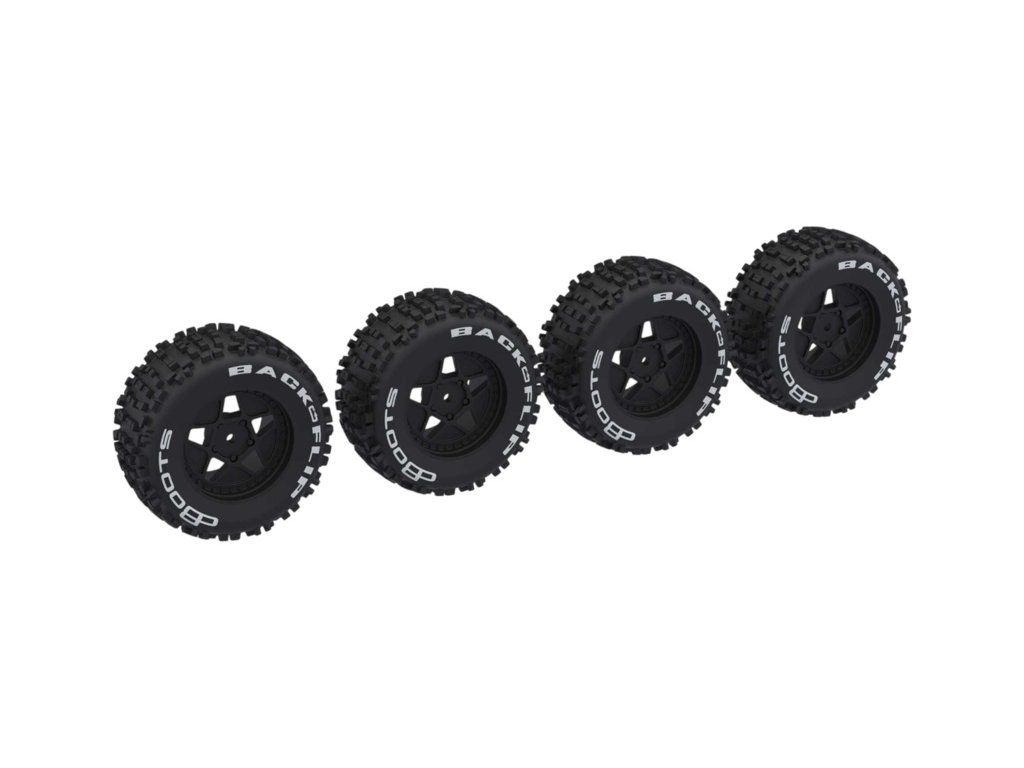 Náhradní díl pro RC modely auta Arrma Mini Kraton: kolo s pneu dBoots Backflip (4). Unašeč je šestihran 12 mm. Vícevrstvý dezén Backflip pro skvělou trakci za všech podmínek.