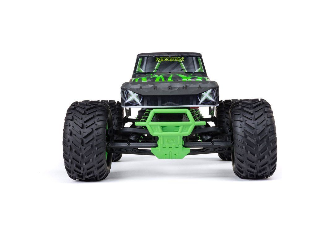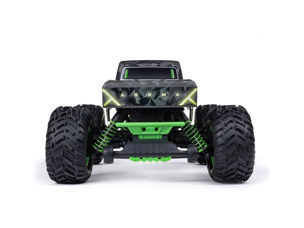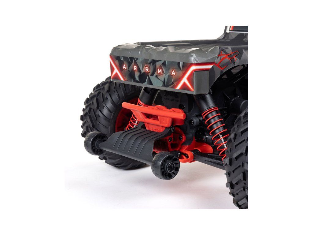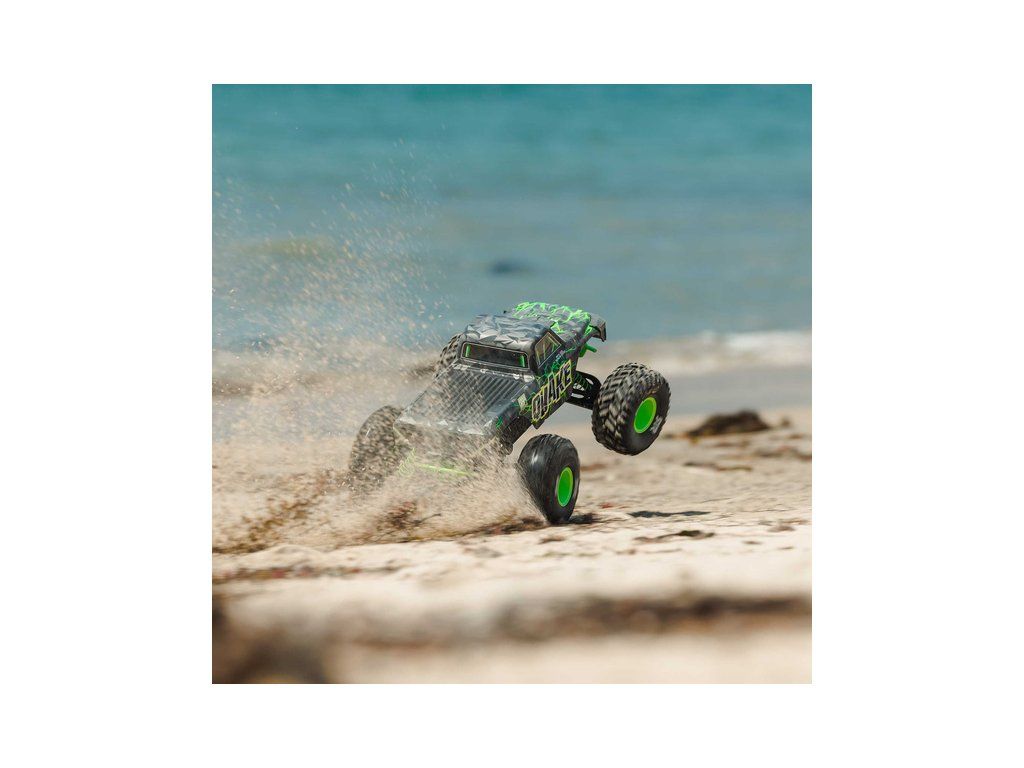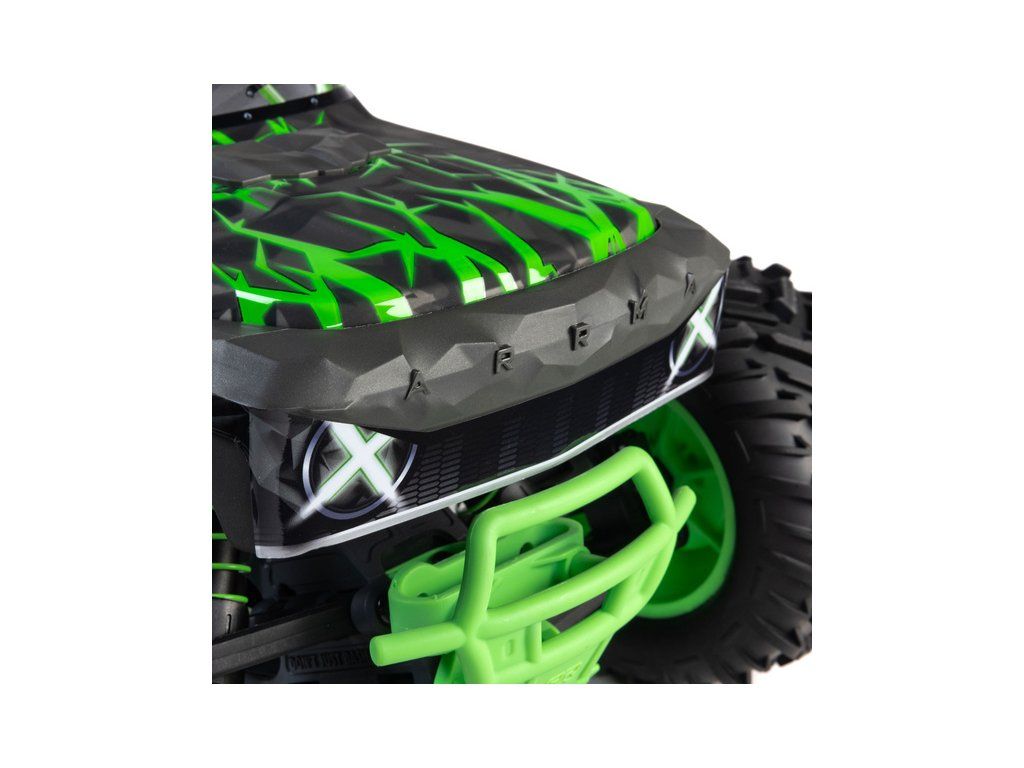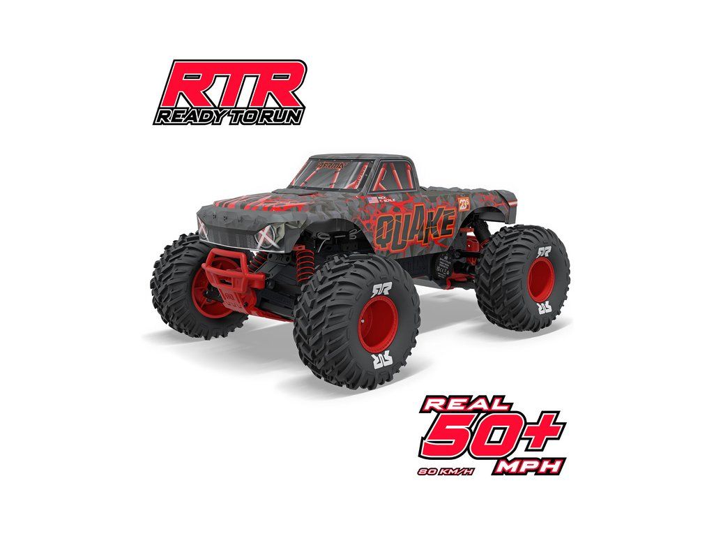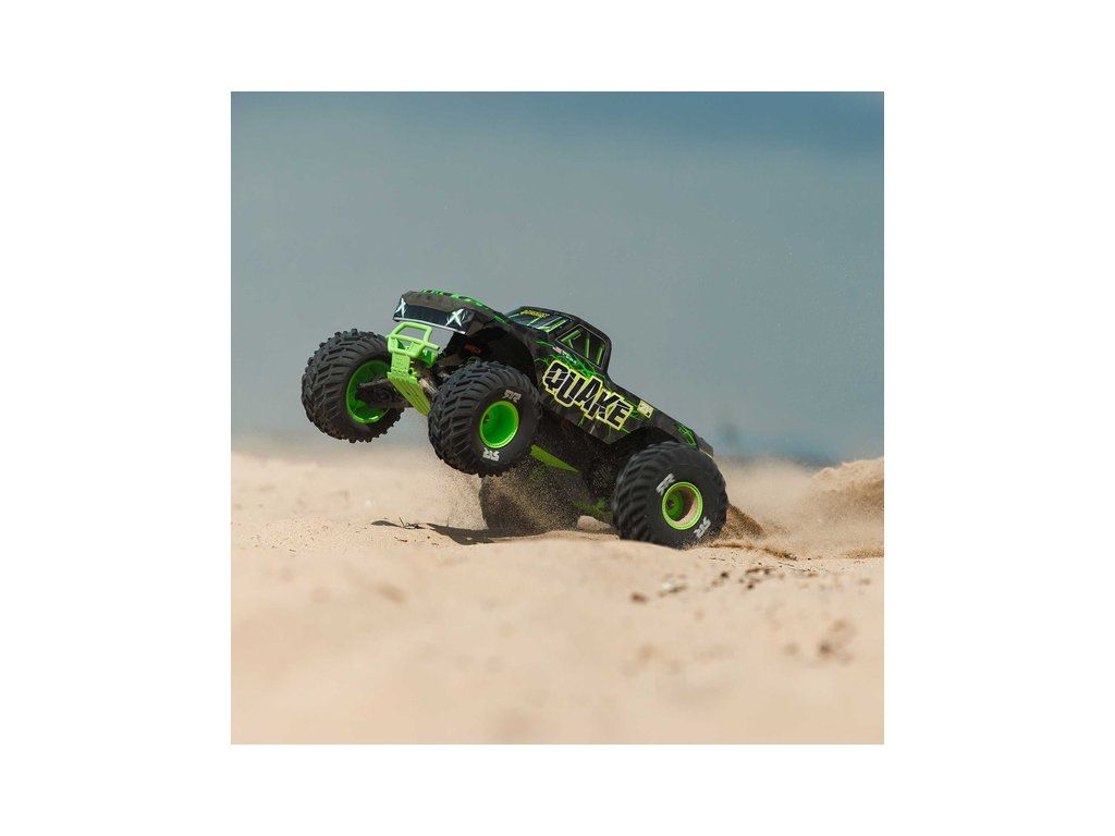 RC model monster trucku Arrma Quake 223S BLX s výkonným střídavým motorem a rychlostí až 80 km/h. Náhon 2WD, nezávislé zavěšení, olejové tlumiče, řídící jednotka Spektrum 45A SLT, napájení 2-3S LiPo, elektronická stabilizace DSC.