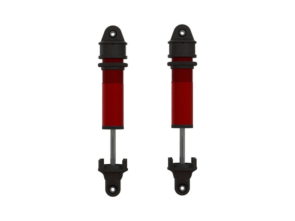 Arrma tlumič kompletní 20x188mm (2) - sestavený, naplněno olejem o viskozitě 700cSt. Robustní hřídel 6mm. Precizně vyrobené červeně eloxované tělo. Hřídel z nerezové oceli. Písty 8 děr s průměrem 1,5 mm. Připraveno pro osazení pružinami. Matice pro nastavení předpětí pružin.