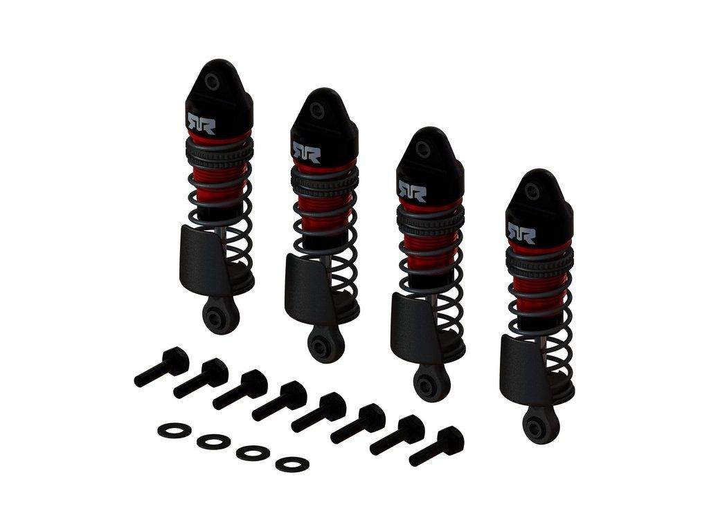 Kvalitní sestavený tlumič pro RC modely aut v měřítku 1:18-1:14. Naplněný silikonovým olejem o viskozitě 300 cSt. Tělo obsahuje matici pro nastavení předpětí pružin. 4 ks.