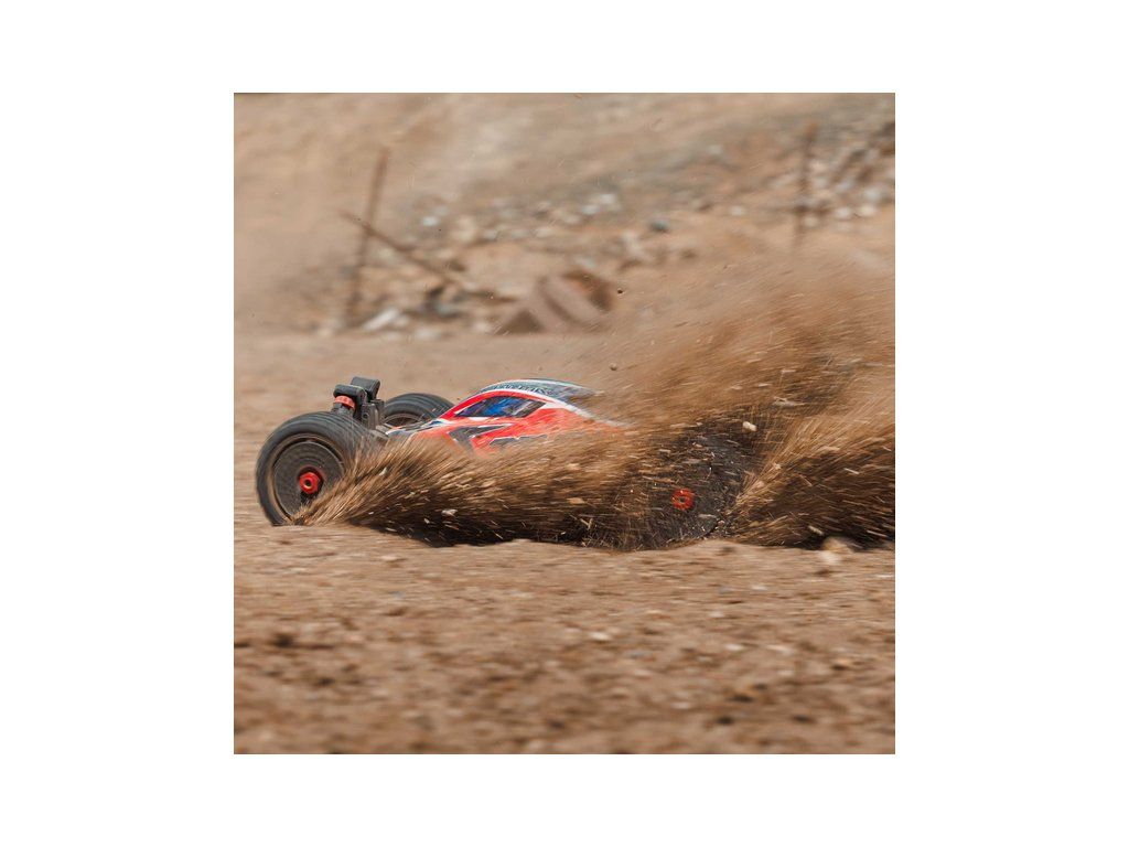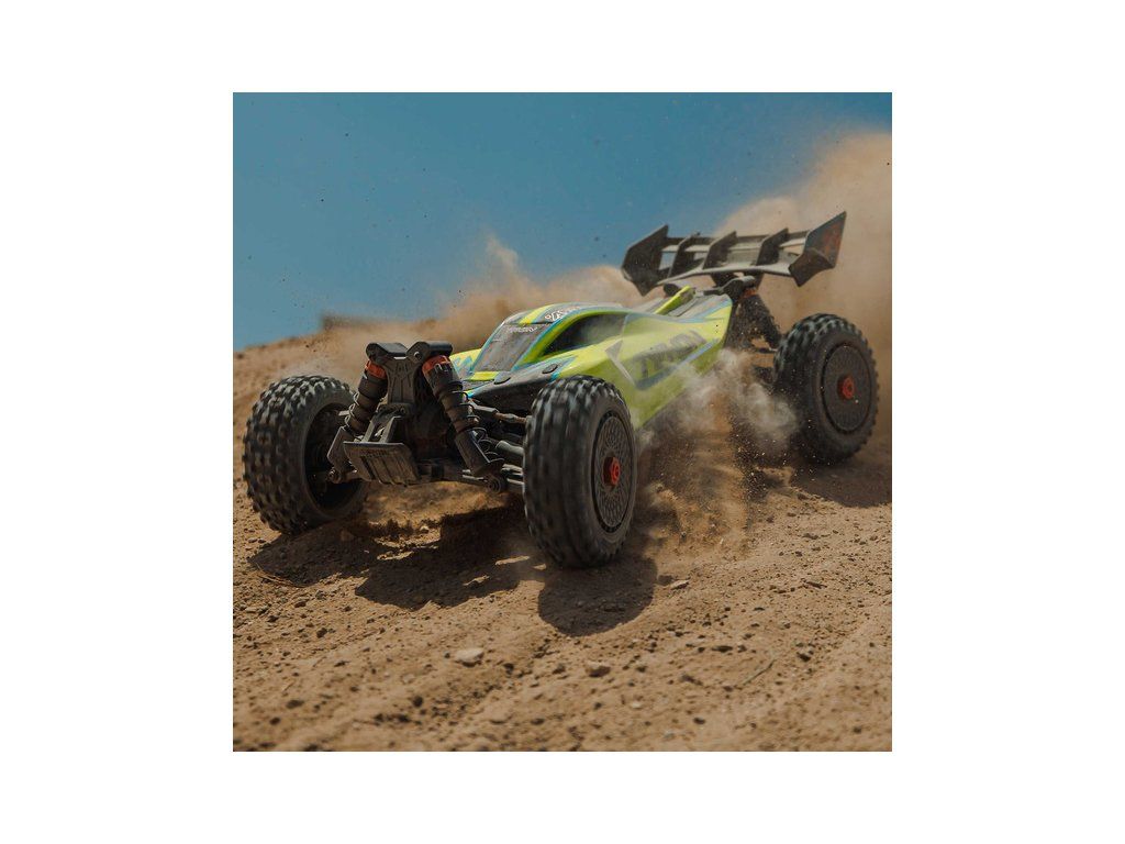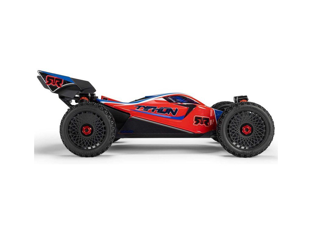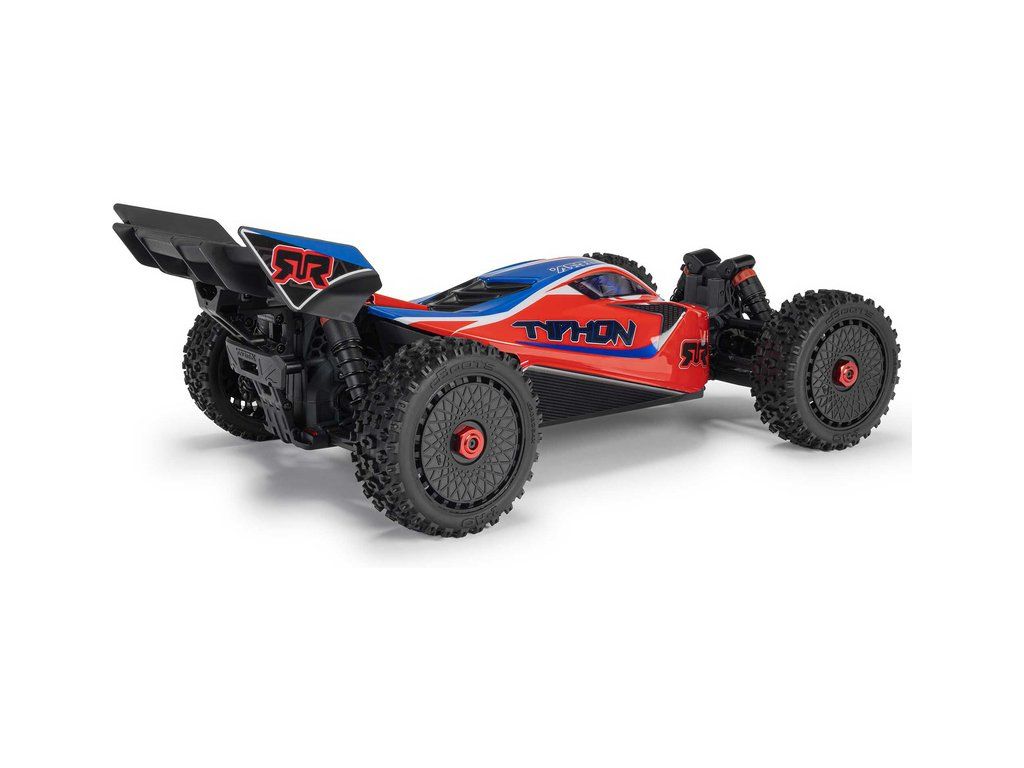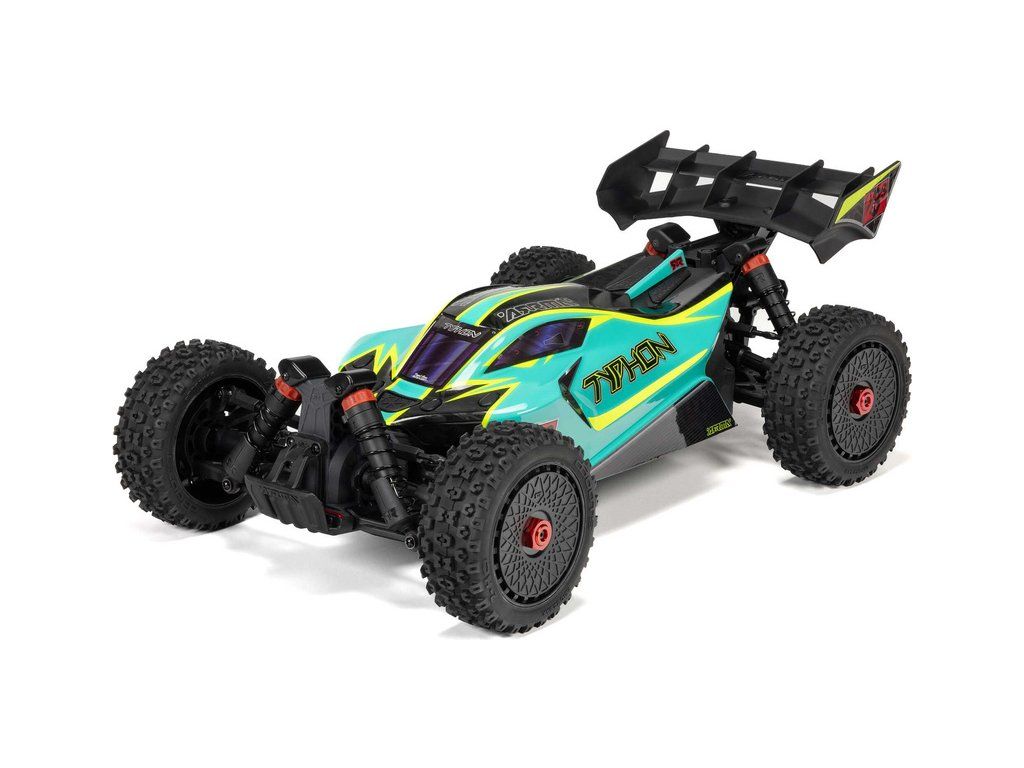 RC model auta Arrma Typhon 223S BLX v měřítku 1:8, s náhonem 4WD, výkonným střídavým motorem a rychlostí až 80 km/h. Nezávislé zavěšení, olejové tlumiče, řídící jednotka Spektrum 80A SLT 2-3S LiPo, elektronická stabilizace DSC.