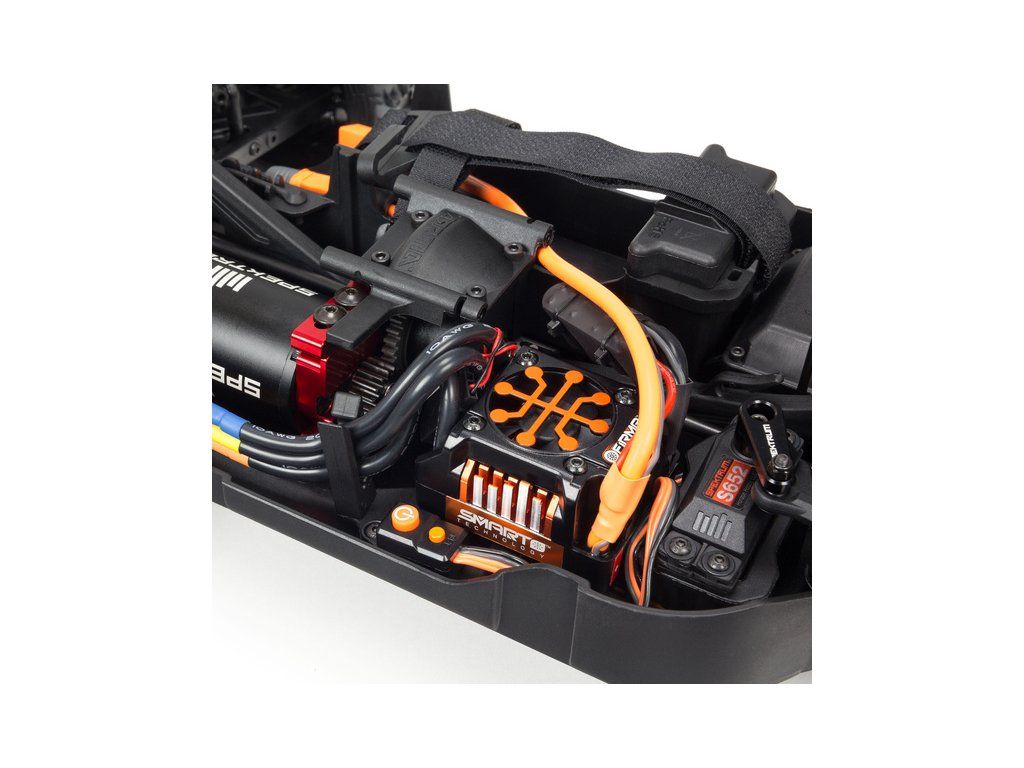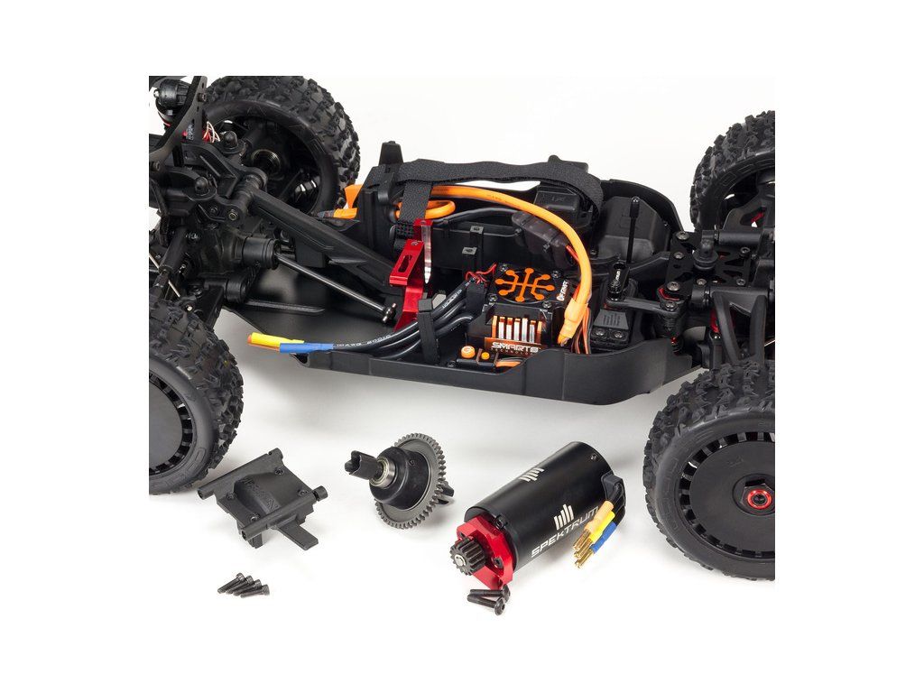 RC model auta v měřítku 1:8, Arrma Typhon 6S BLX V5 s náhonem 4WD je kompletně vybaven komponenty Spektrum. Motor Firma 4074 2050Kv, regulátor Firma™ 150A Smart. Hliníkové šasi, rychlost přes 90 km/h! Vysílač Spektrum SLT3, přijímač Spektrum™ SR315, digitální servo Spektrum™ S652.