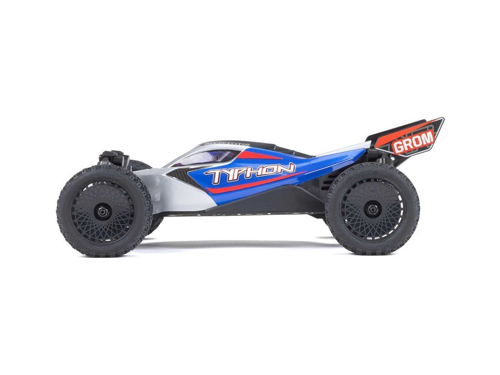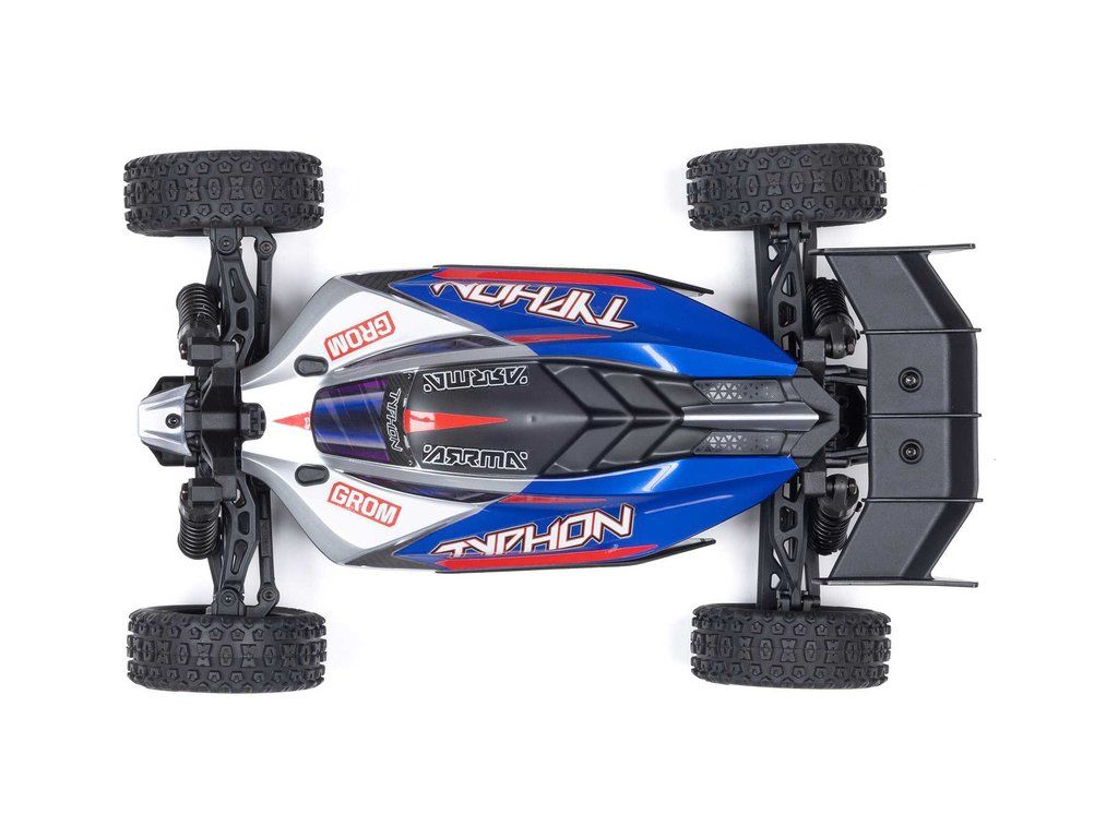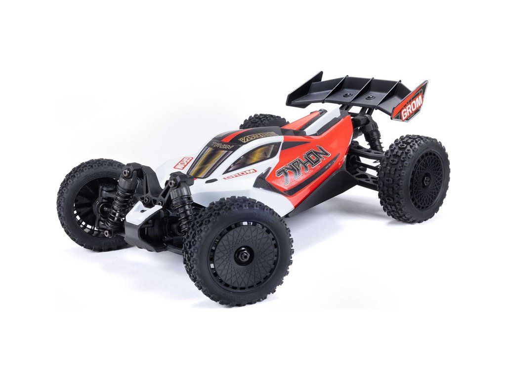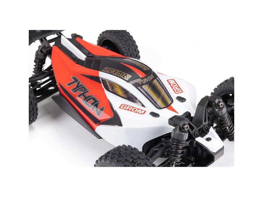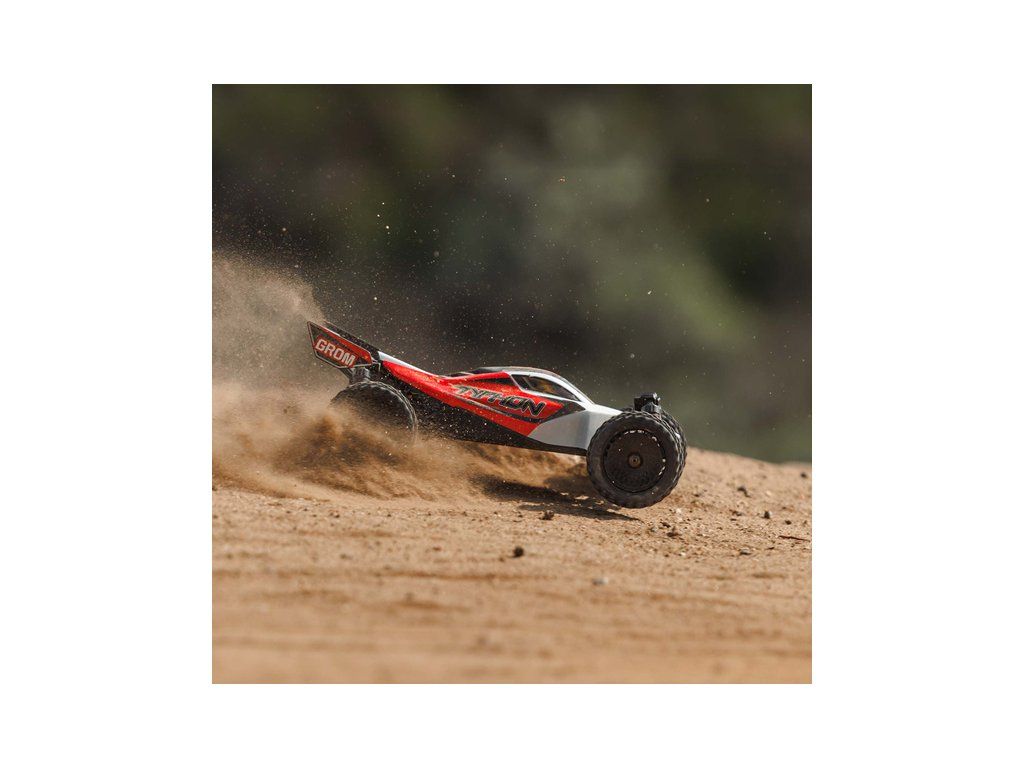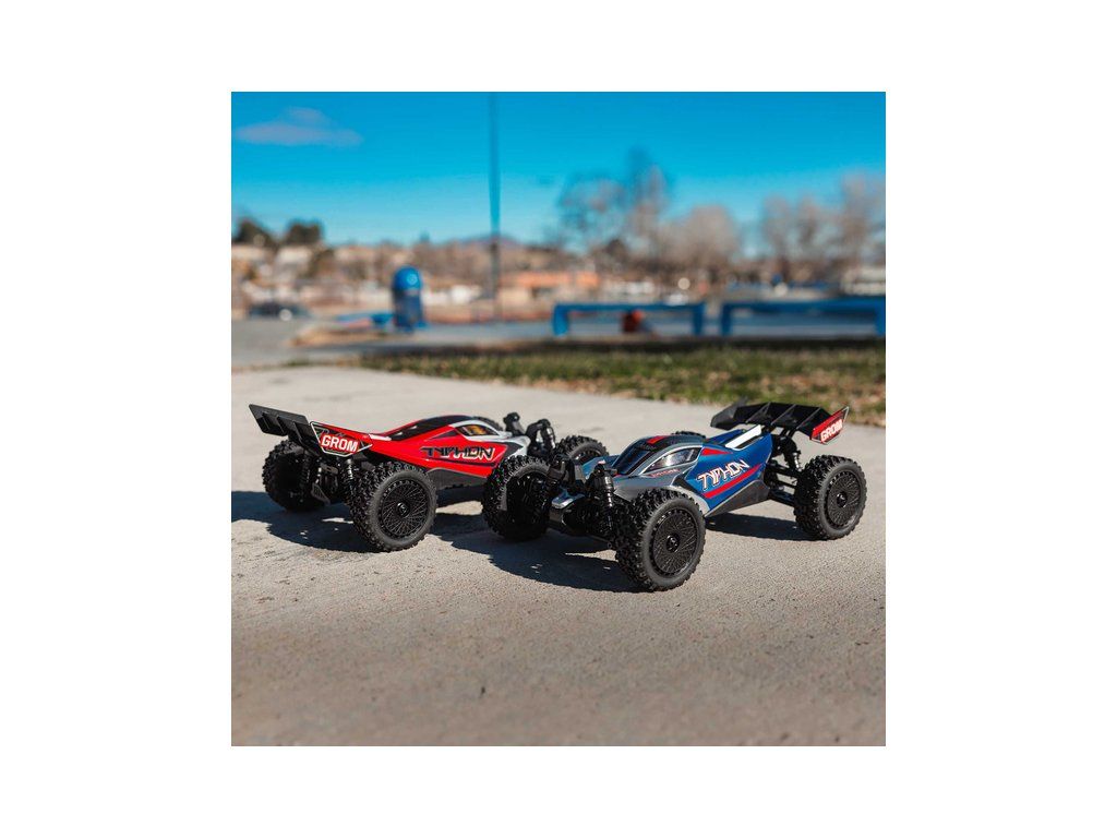 Malý a zábavný RC model auta Arrma Typhon Grom v měřítku 1:14, s náhonem 4WD, funkcemi Smart a rychlostí až 30 km/h. Je precizně zkonstruován a vychází z oblíbeného většího modelu Typhon 1:8. Je kompletně připraven k jízdě včetně baterie a nabíječe.