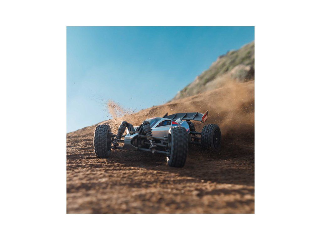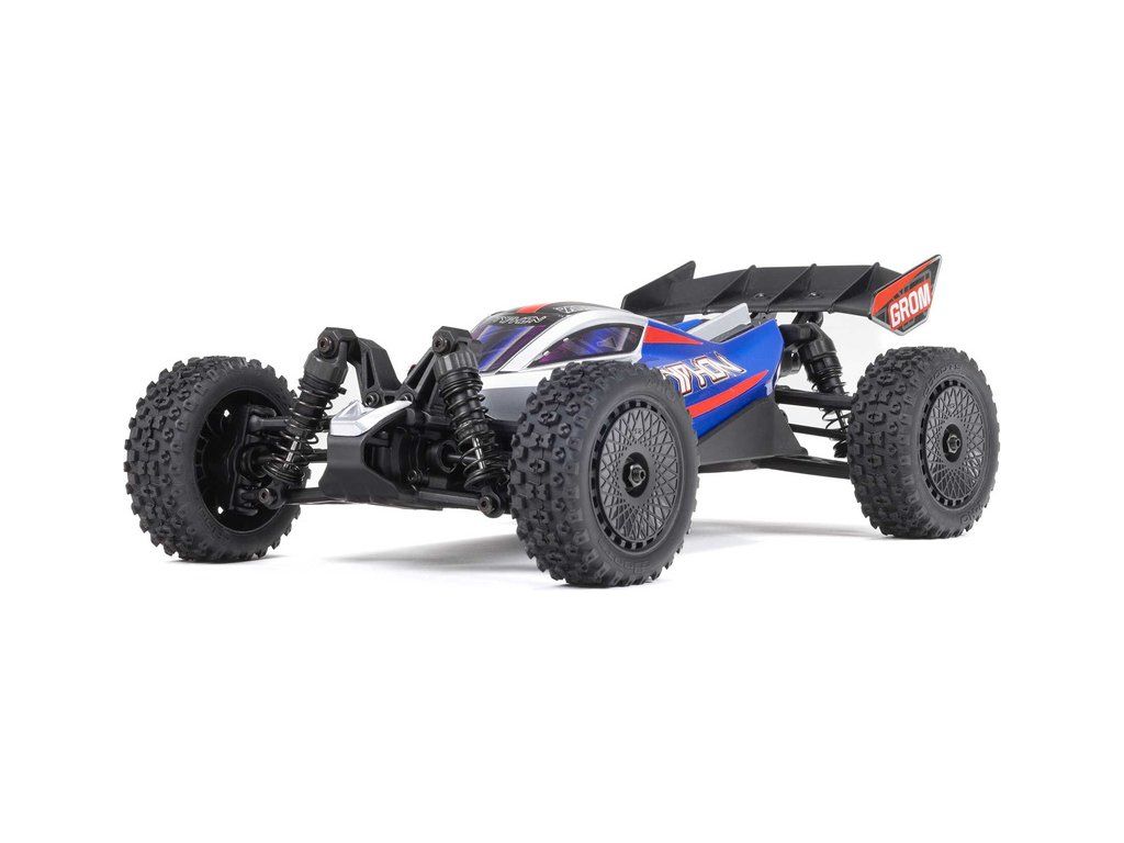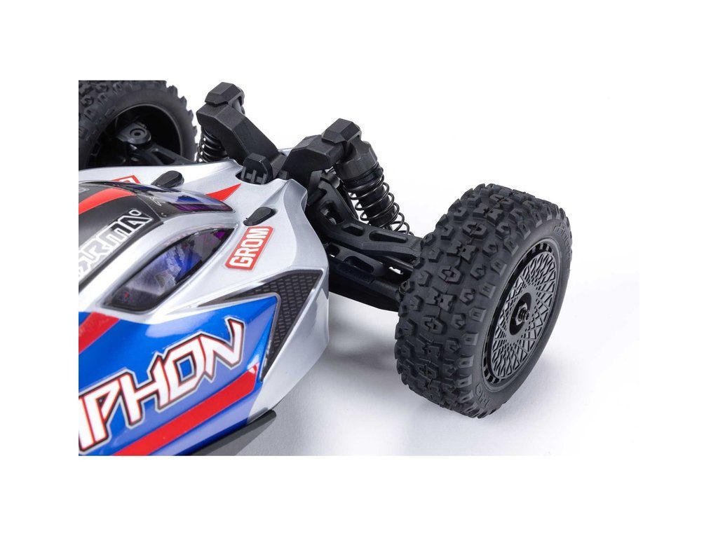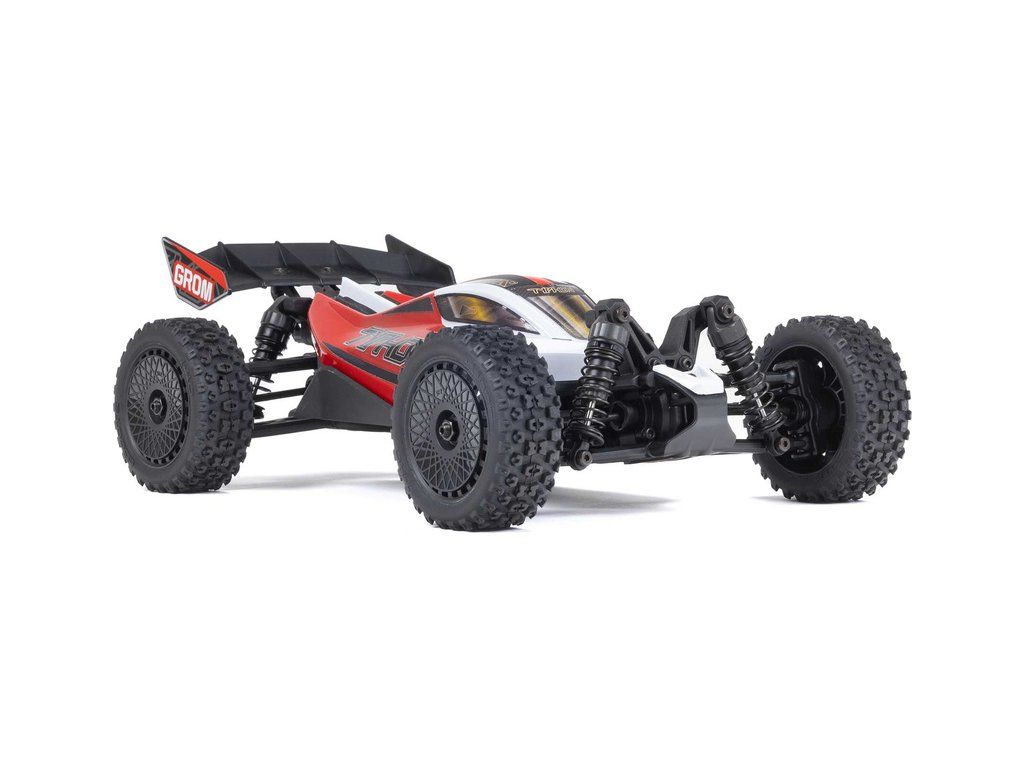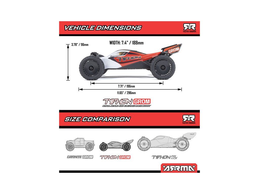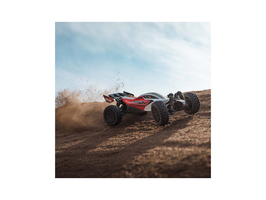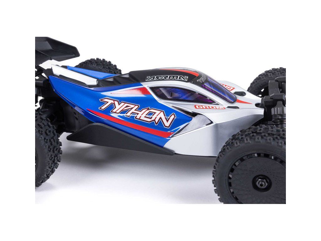 Malý a zábavný RC model auta Arrma Typhon Grom v měřítku 1:14, s náhonem 4WD, funkcemi Smart a rychlostí až 30 km/h. Je precizně zkonstruován a vychází z oblíbeného většího modelu Typhon 1:8. Je kompletně připraven k jízdě včetně baterie a nabíječe.