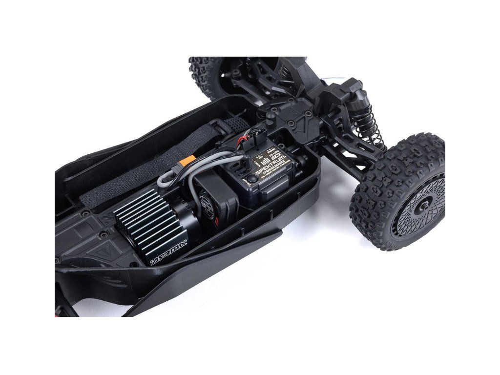 V balení naleznete sestavený RC model Typhon GROM 4WD RTR s nainstalovanými komponenty: řídící jednotka Spektrum SLT 2-v-1 25A, motor Arrma MEGA 380 28T, servo Spektrum SX110. Vysílač Spektrum 2.4GHz SLT2™, LiPol baterie Spektrum Smart 7.4V 1400mAh 2S 30C Hard Case, nabíječ Spektrum S10 Smart G2 Mini 2S USB-C, 4ks AA baterie pro vysílač. Příslušenství: podložky pod pružiny, klíč imbus, šroubovák imbus. Návod CZ a manuál EN, DE, FR.