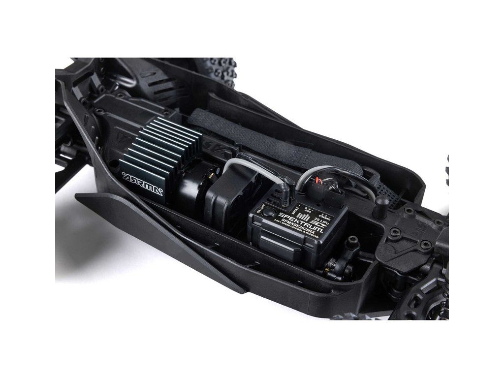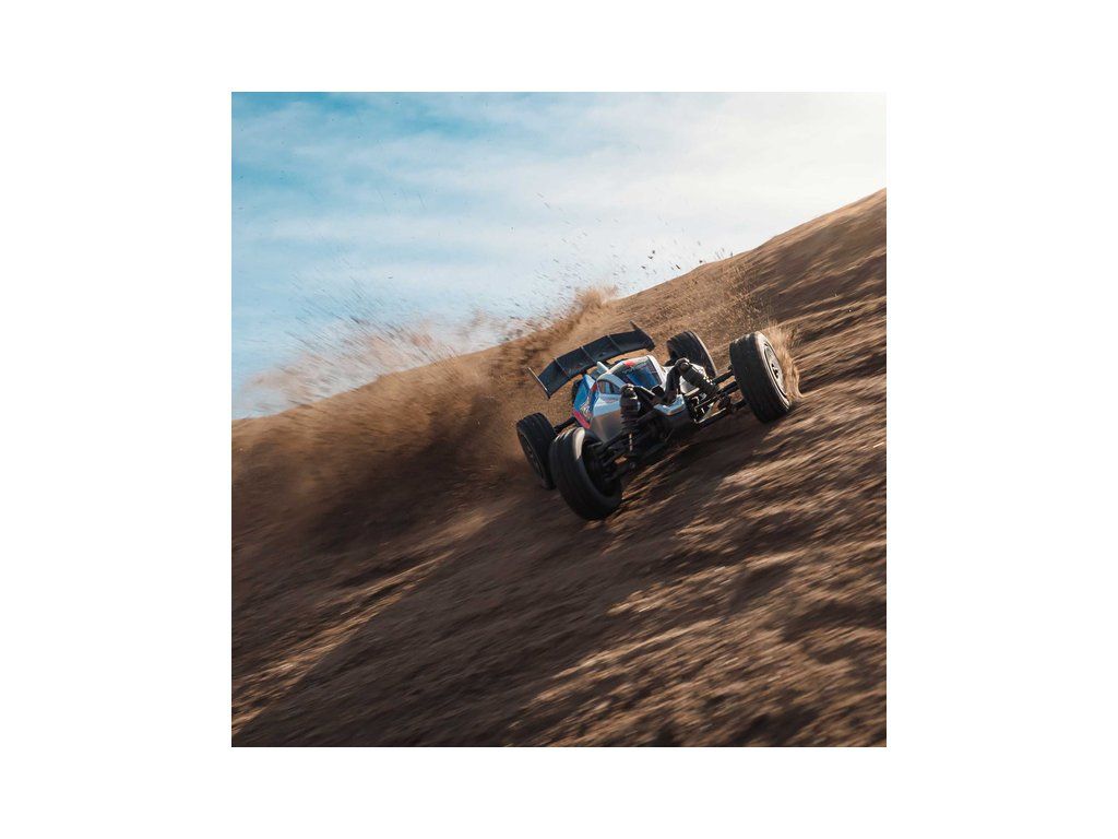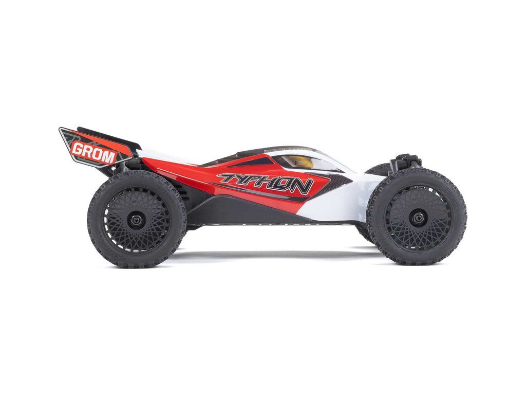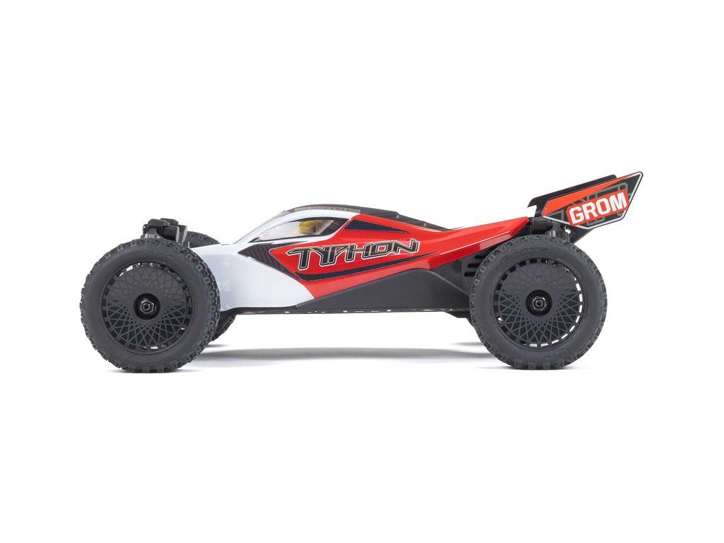 Malý a zábavný RC model auta Arrma Typhon Grom v měřítku 1:14, s náhonem 4WD, funkcemi Smart a rychlostí až 30 km/h. Je precizně zkonstruován a vychází z oblíbeného většího modelu Typhon 1:8. Je kompletně připraven k jízdě včetně baterie a nabíječe.
