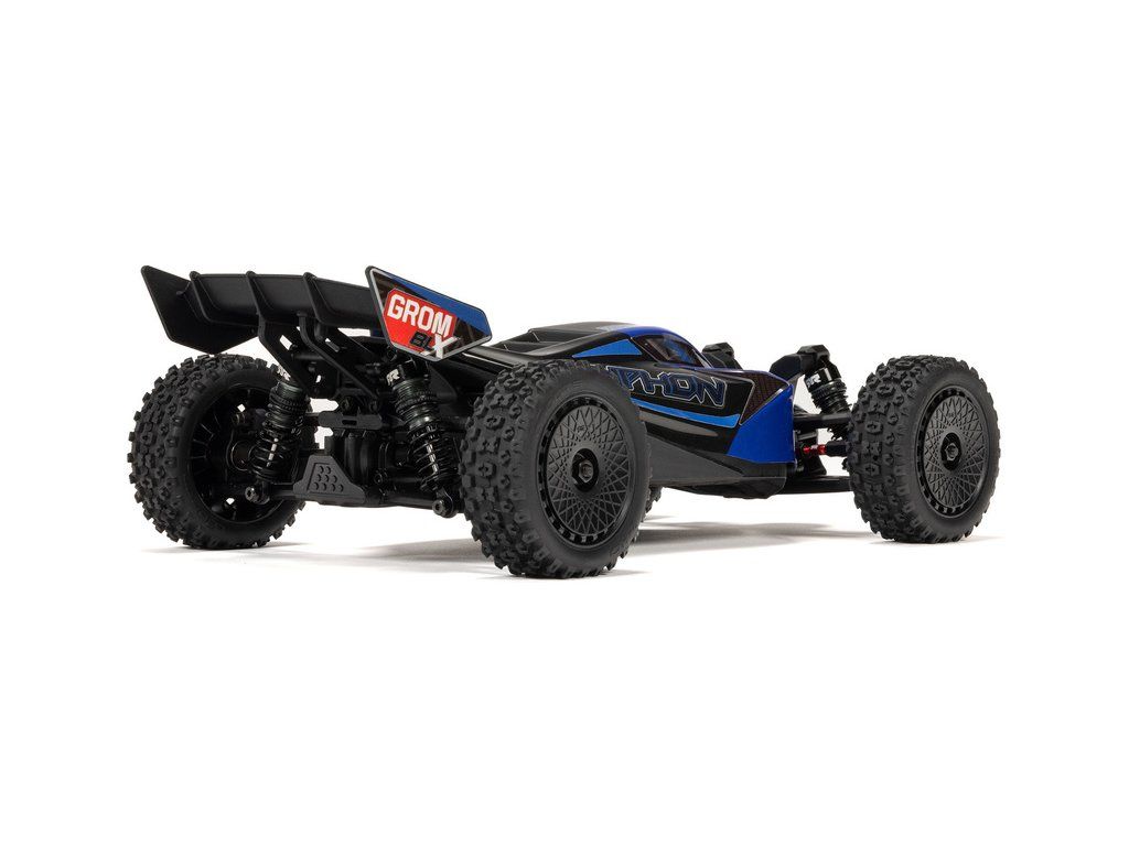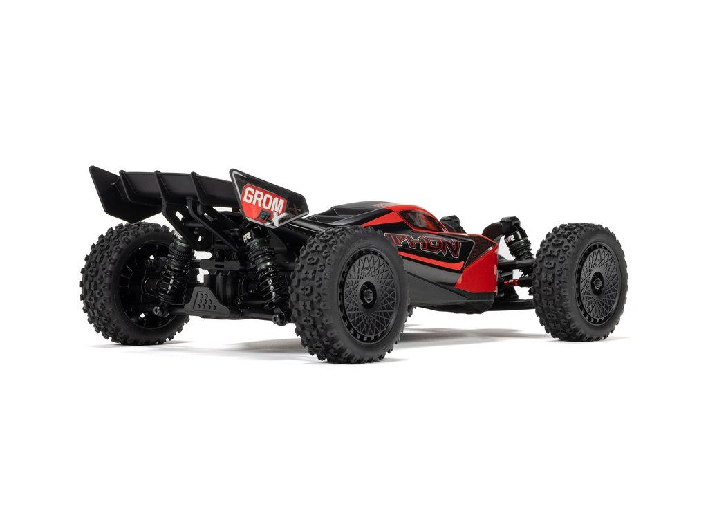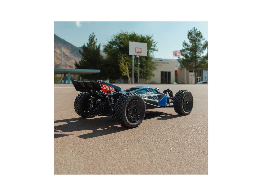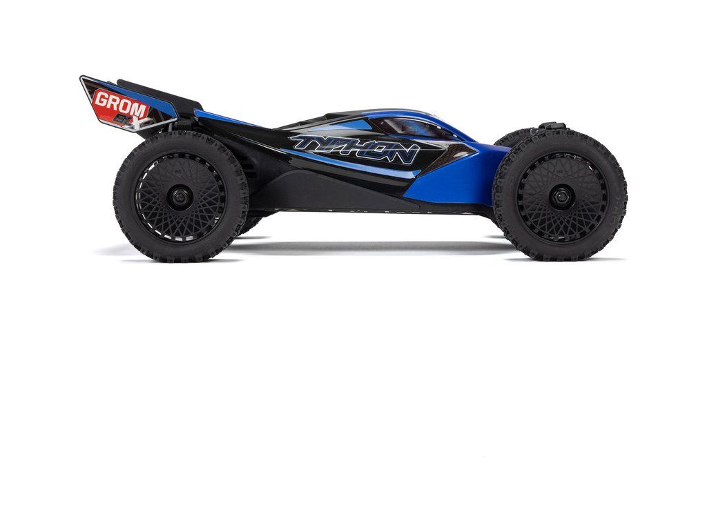 RC model auta Arrma Typhon Grom v měřítku 1:14, s náhonem 4WD, výkonným střídavým motorem a rychlostí až 56 km/h. Precizně zkonstruovaná malá zábavná buggy. Továrně instalované upgrady, stabilizace DSC. Včetně baterie 2S LiPo a USB nabíječe.