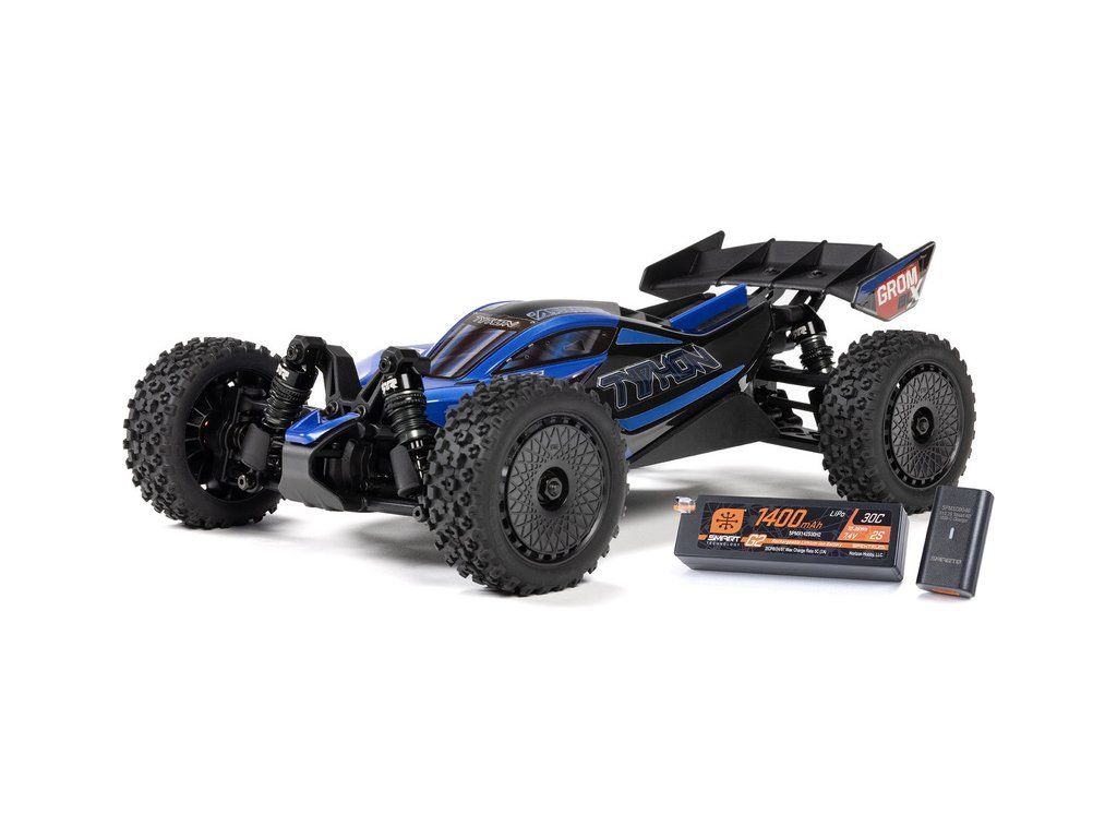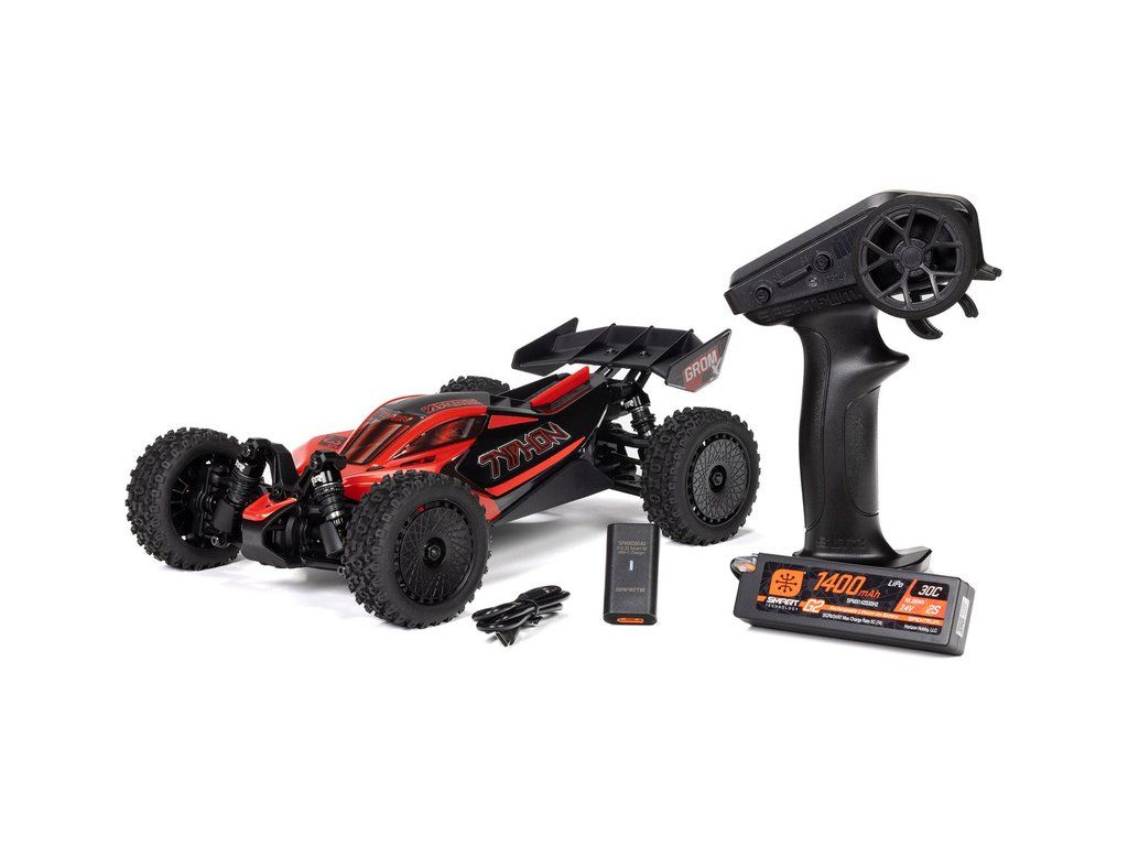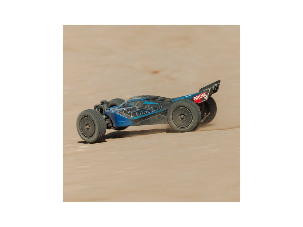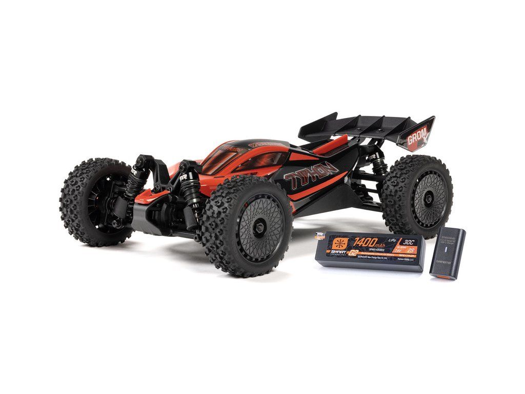 RC model auta Arrma Typhon Grom v měřítku 1:14, s náhonem 4WD, výkonným střídavým motorem a rychlostí až 56 km/h. Precizně zkonstruovaná malá zábavná buggy. Továrně instalované upgrady, stabilizace DSC. Včetně baterie 2S LiPo a USB nabíječe.