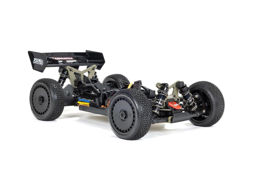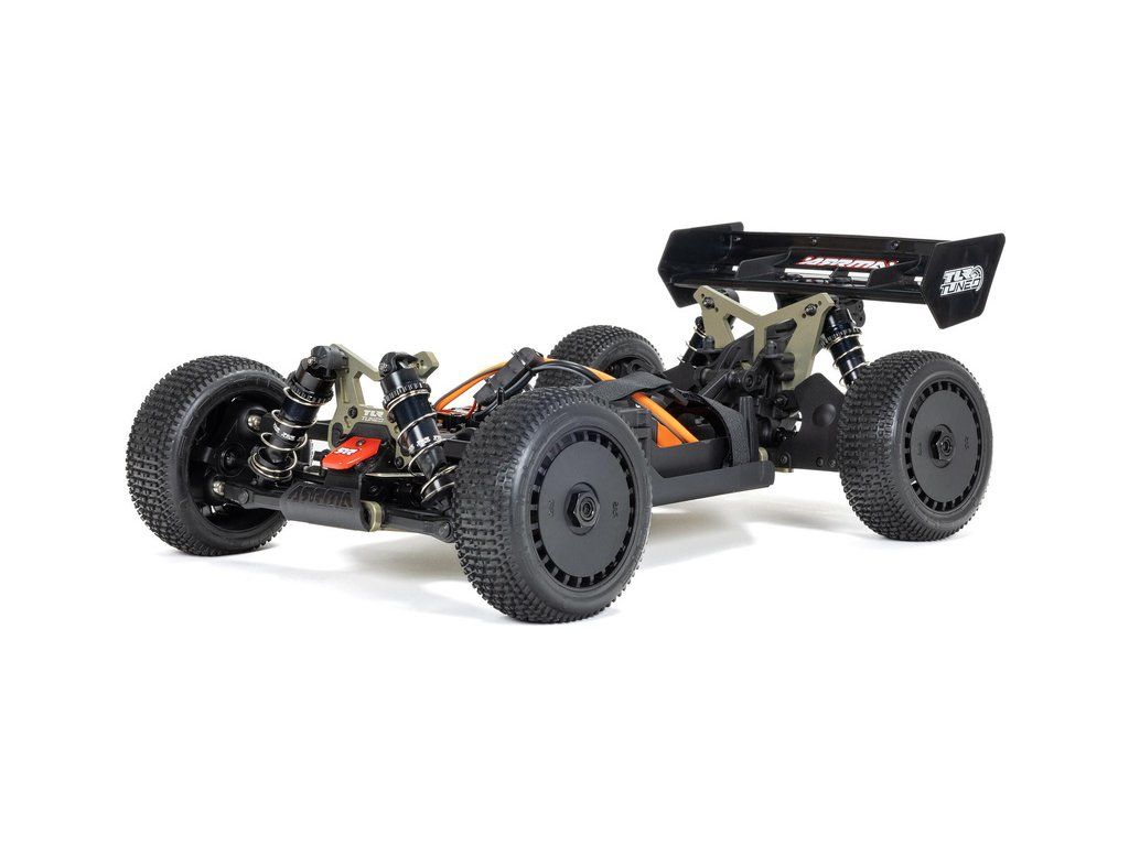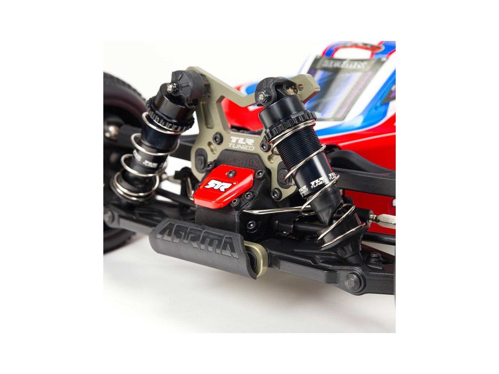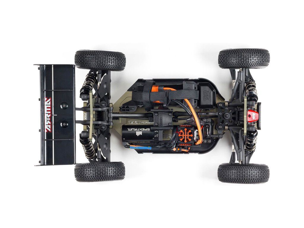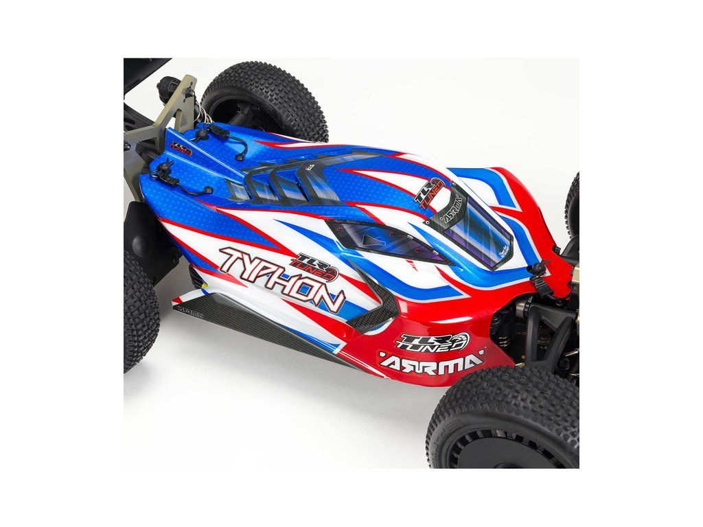 Závodní RC model auta Buggy ARRMA TLR Tuned TYPHON 4WD v měřítku 1:8 je vybaven špičkovými díly pro lepší pevnost, ovladatelnost a dlouhou životnost při soutěžním závoděním. Nainstalovány jsou výkonné komponenty pohonu Spektrum Firma a RC souprava Spektrum 2.4GHz SLT3.