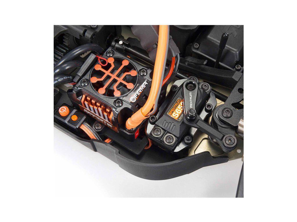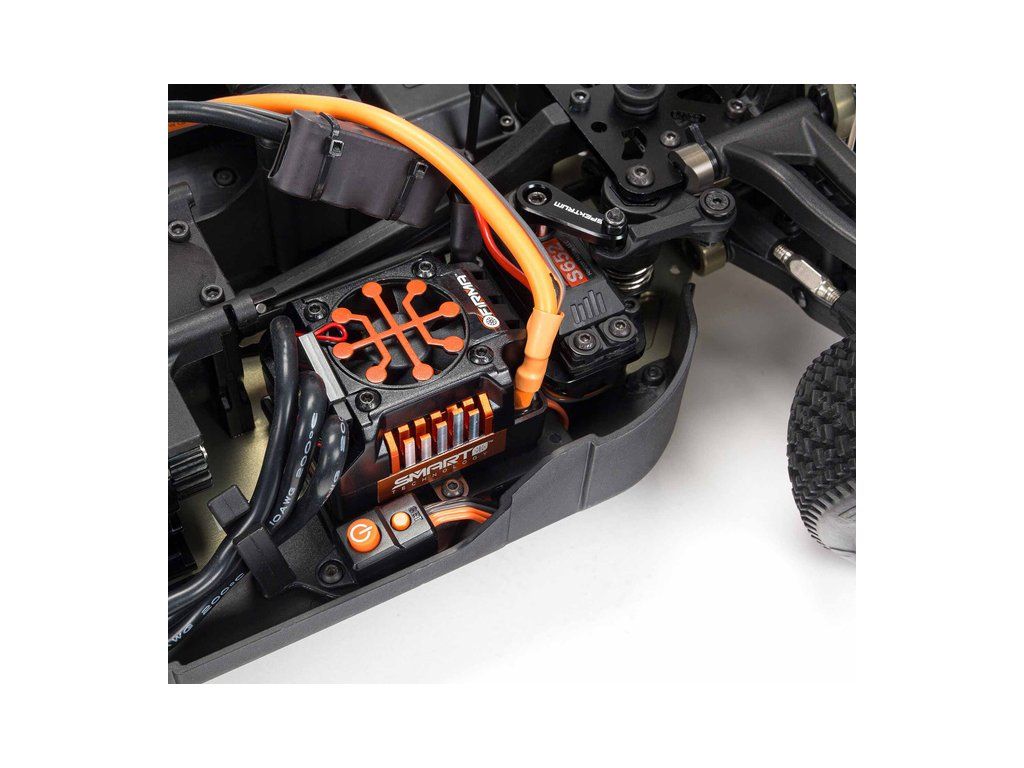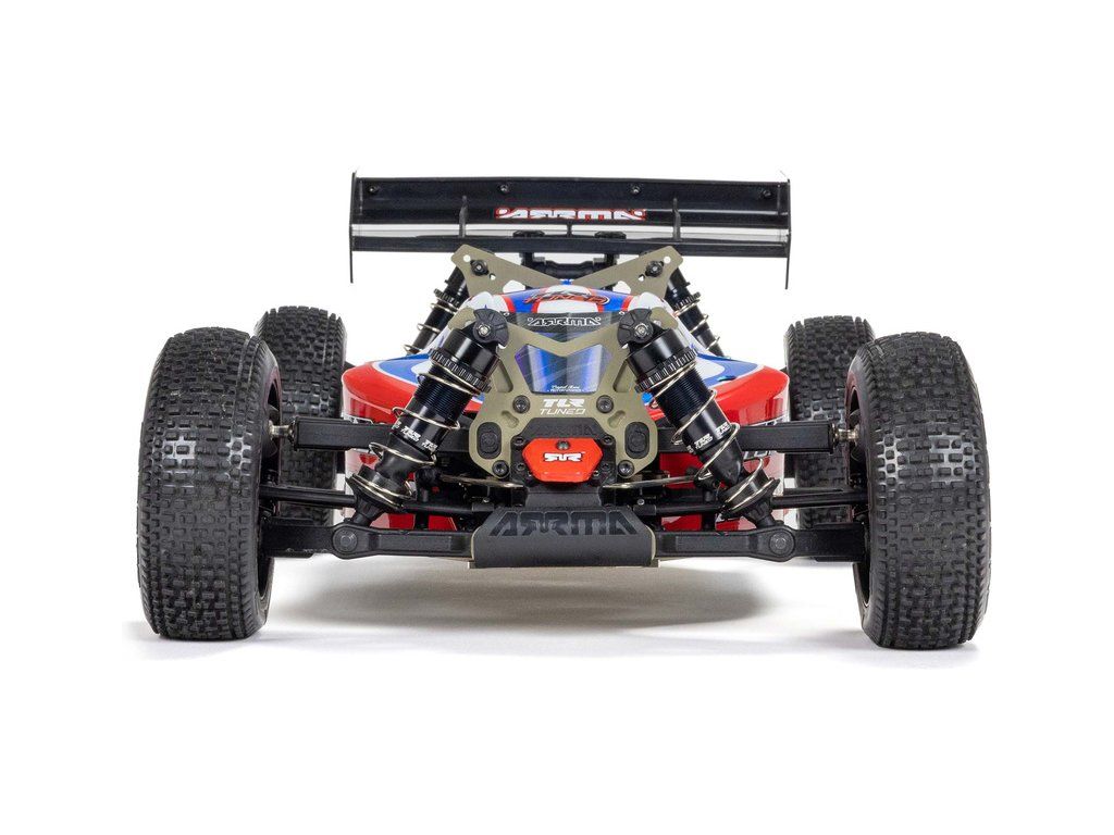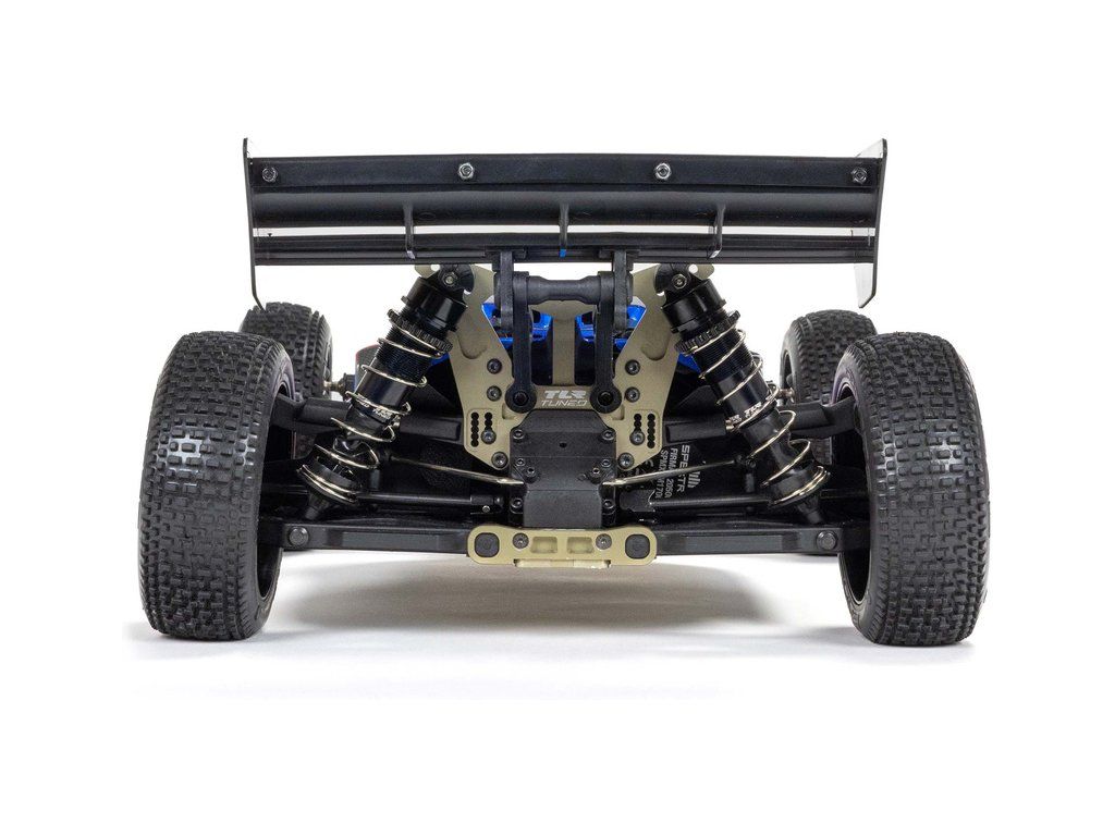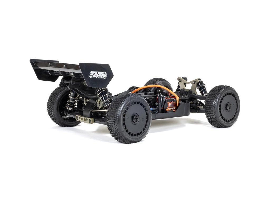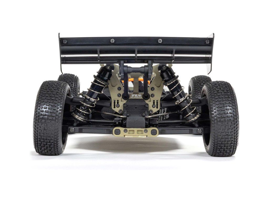 Závodní RC model auta Buggy ARRMA TLR Tuned TYPHON 4WD v měřítku 1:8 je vybaven špičkovými díly pro lepší pevnost, ovladatelnost a dlouhou životnost při soutěžním závoděním. Nainstalovány jsou výkonné komponenty pohonu Spektrum Firma a RC souprava Spektrum 2.4GHz SLT3.