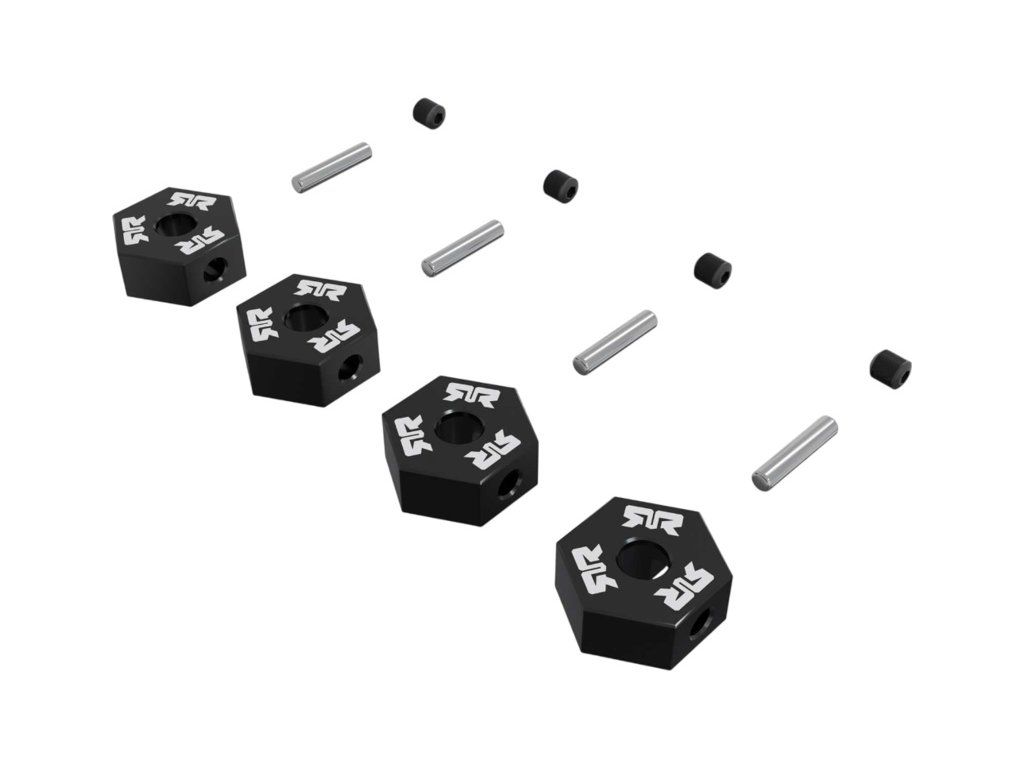 Arrma unašeč kola šestihranný hliníkový 12mm, černý (4), včetně stavěcího šroubu M3x3mm (4) a čepu 2x10 mm (4).