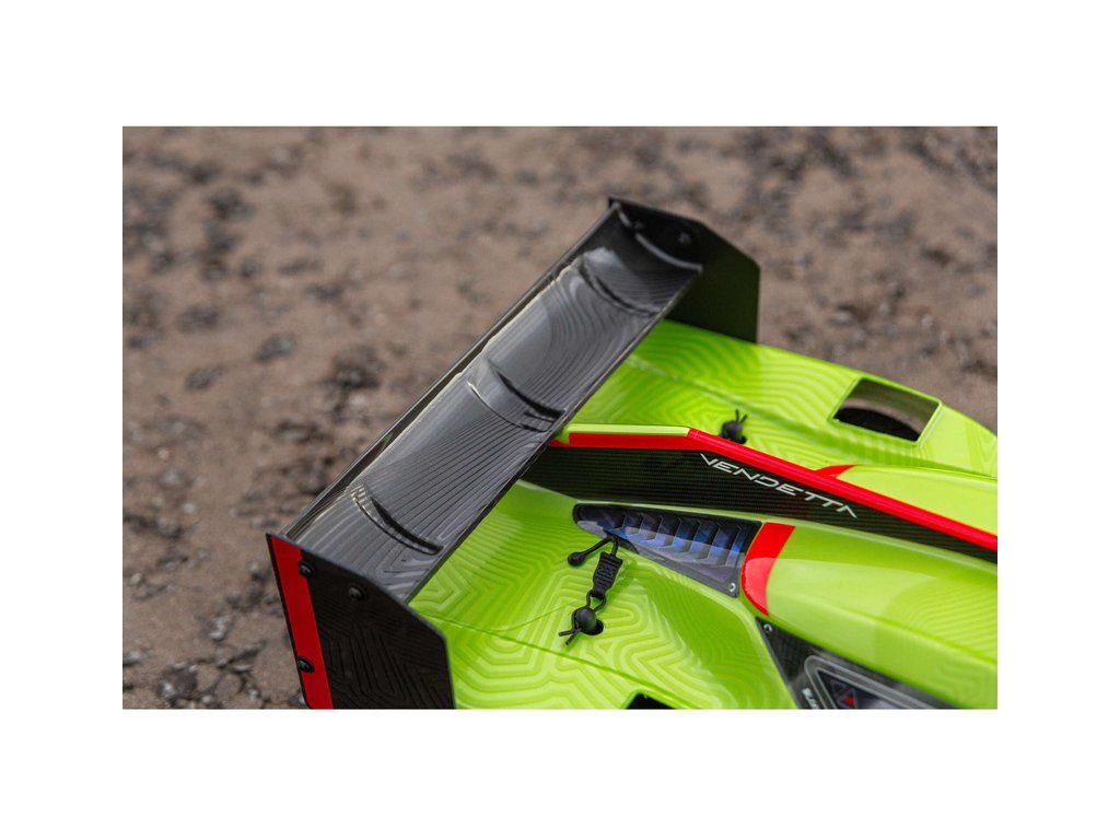 RC model auta Arrma Vendetta 3S BLX 1:8 4WD RTR má neuvěřitelnou rychlost na silnici i na rovném terénu. Osvědčená platforma ARRMA® 4X4 se silným kompozitním šasi, olejovými tlumiči, kovovými převody diferenciálů a modulární koncepcí. Exkluzívní elektronika Spektrum™.