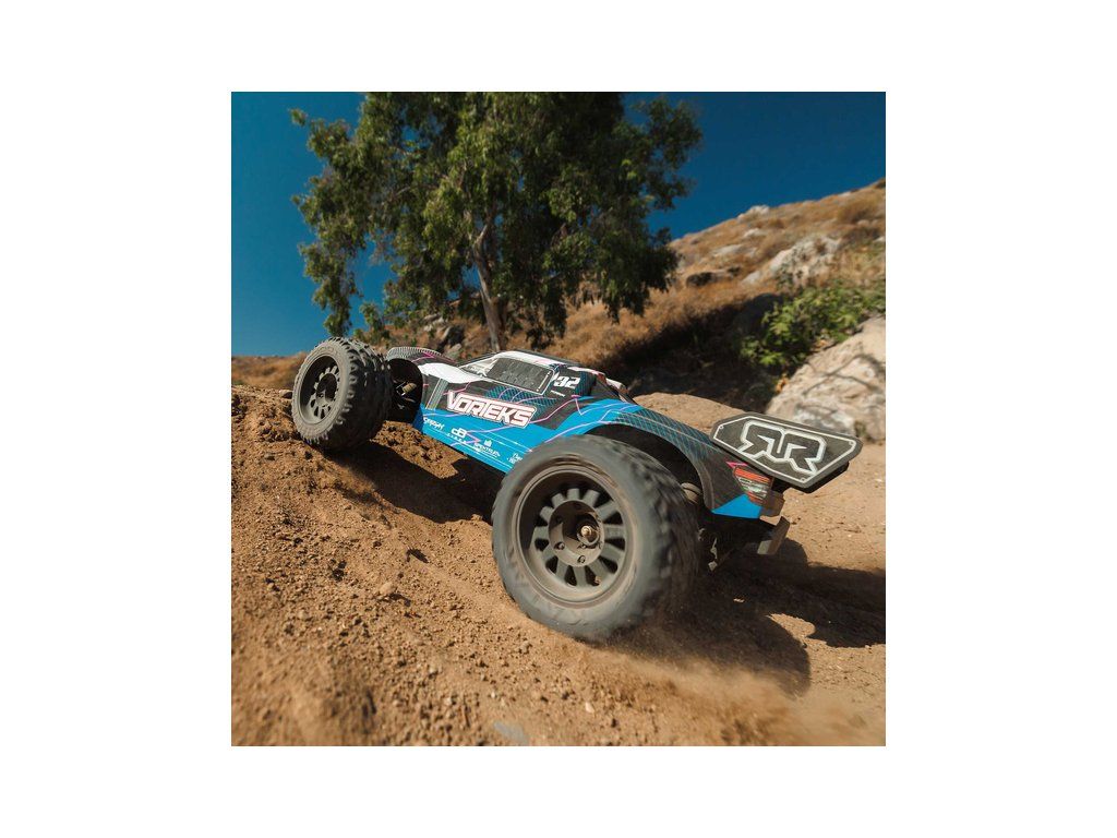 RC model Arrma Vorteks Mega 550 1:10 RTR Basic je cenově dostupné auto na dálkové ovládání typu Truggy s náhonem 2WD, nezávislým zavěšením, olejovými tlumiči, proporcionálním řízením a stejnosměrným motorem. RC souprava SLT 2.4 GHz.